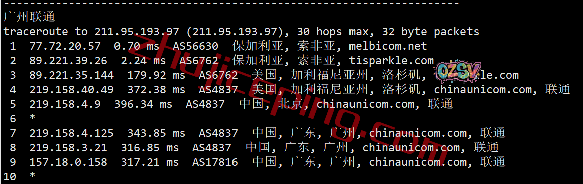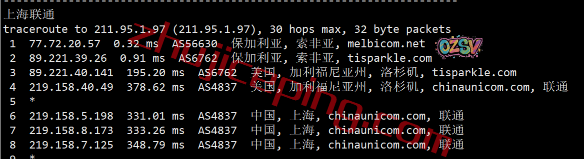 上海/广州方向:走tisparkle去美国洛杉矶,从联通洛杉矶节点直连回国
