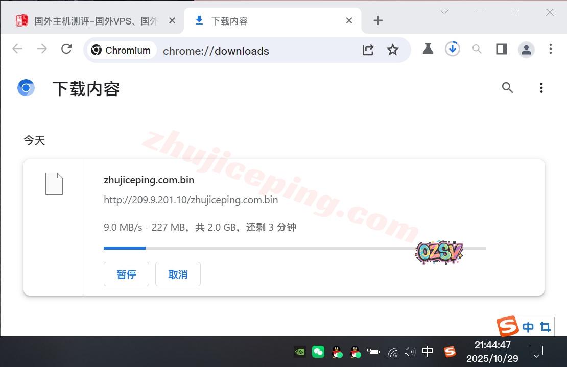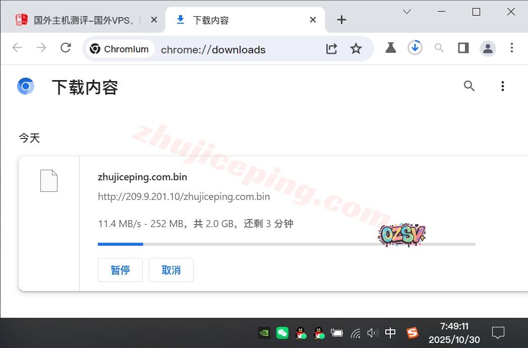 站长广州联通家宽用Chrome下载存放在测试VPS上的文件,大致的下载速度如下所示: