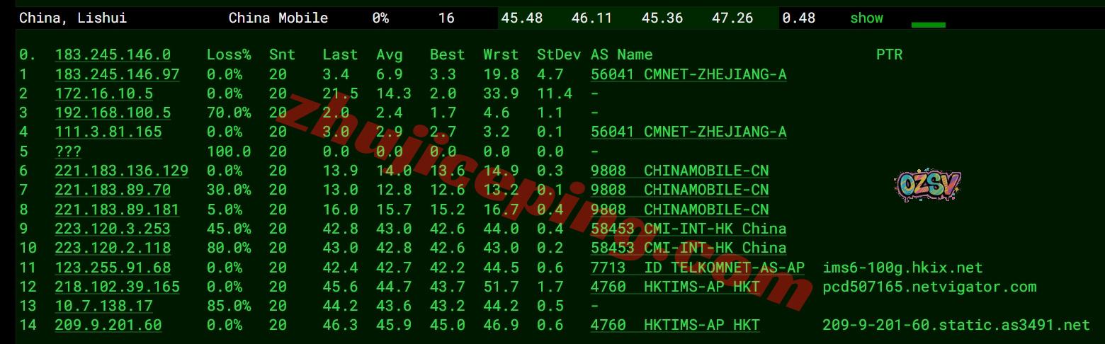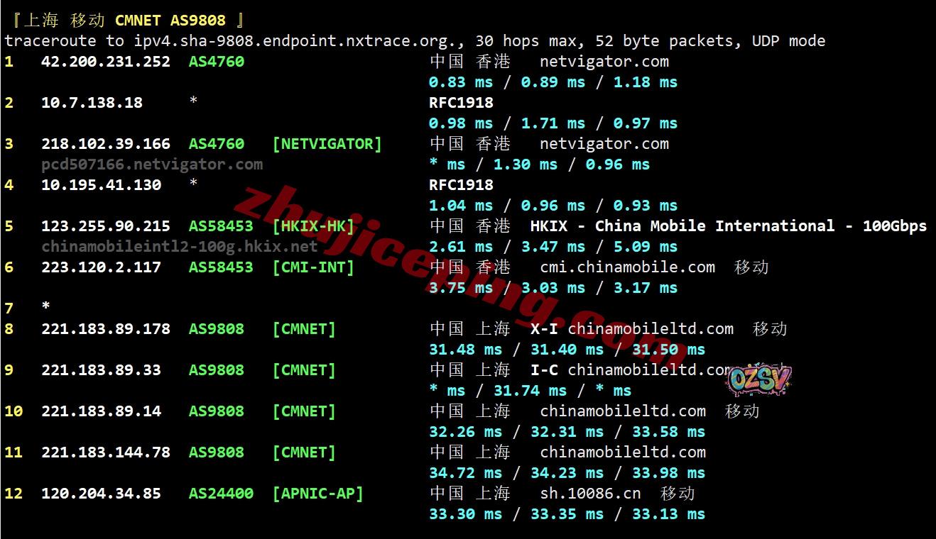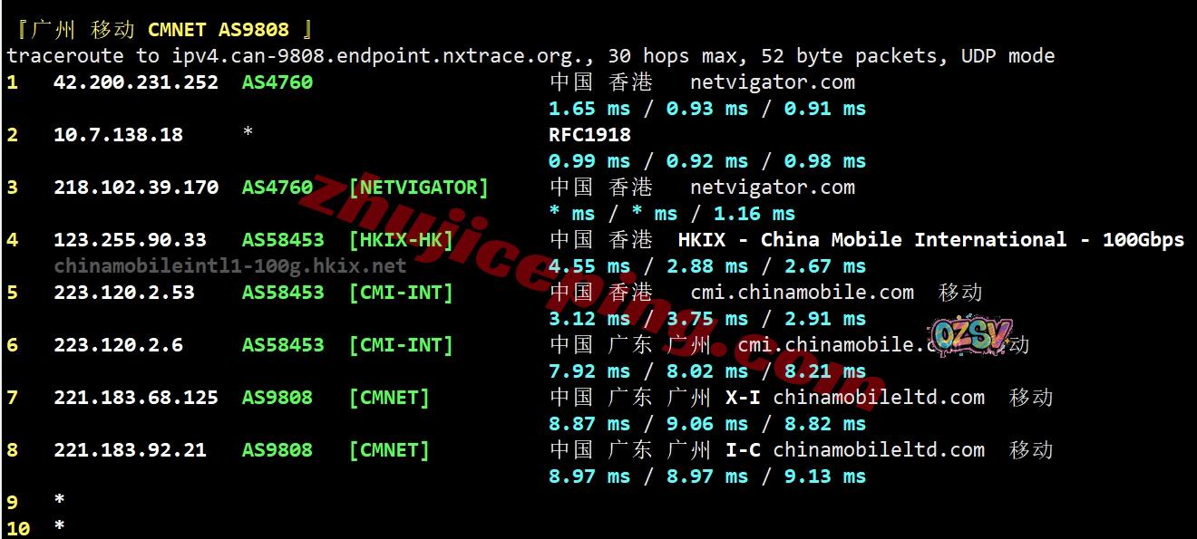 移动去程:直连移动香港CMI节点然后接HKIX再接PCCW