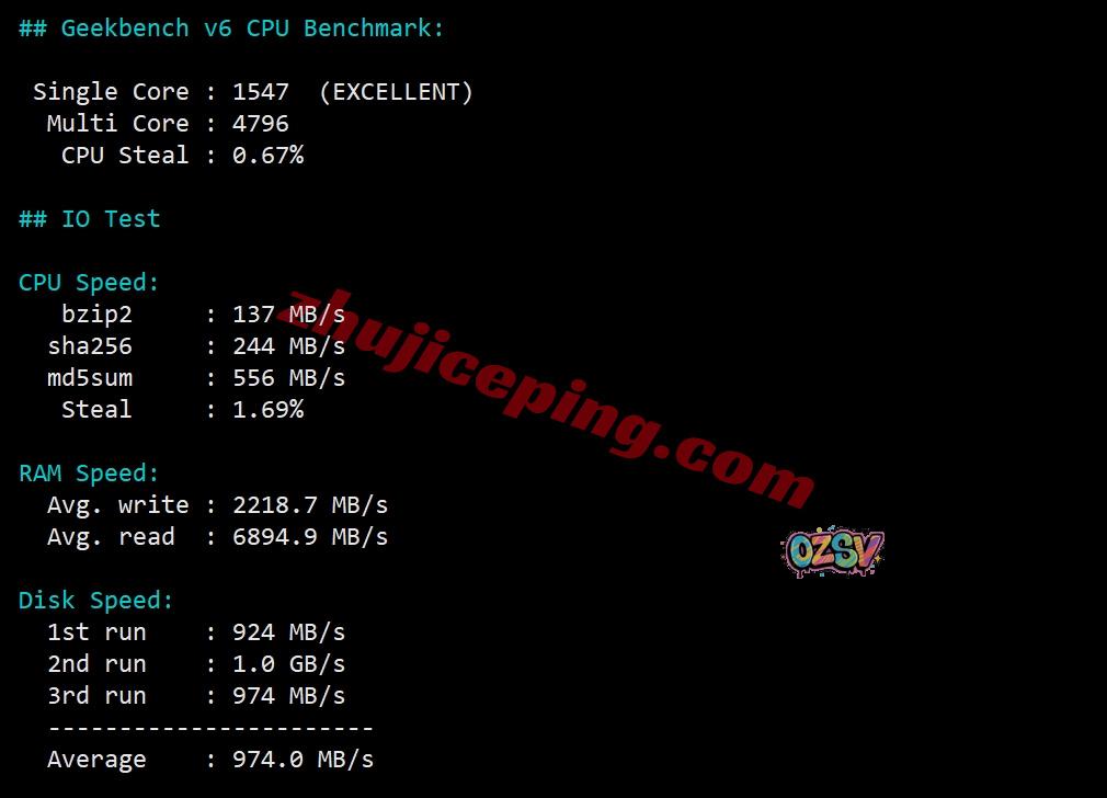 服务器用的硬件本身是非常高端的,所以VPS的性能跑分也是非常离谱,大家无需担忧性能问题;