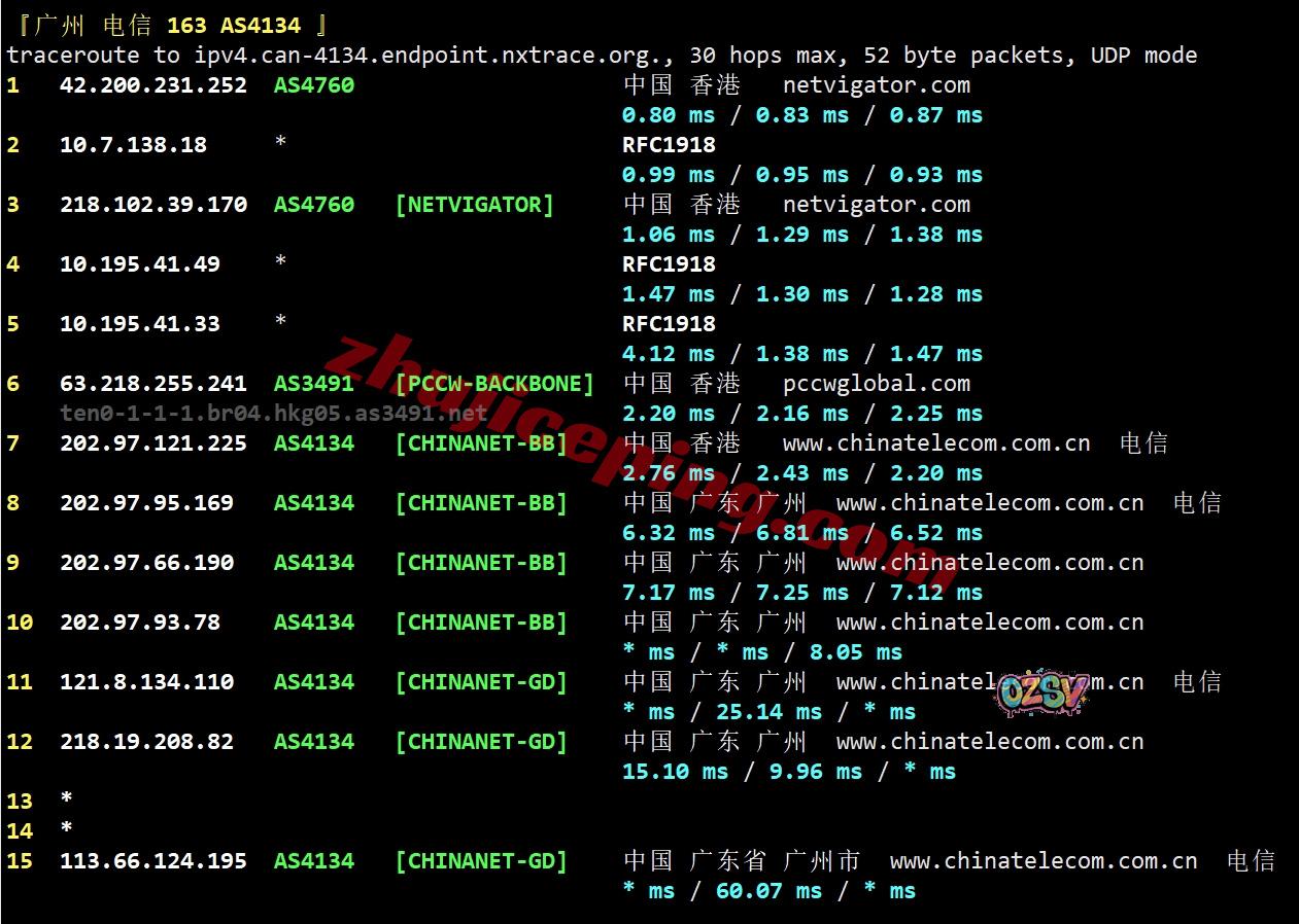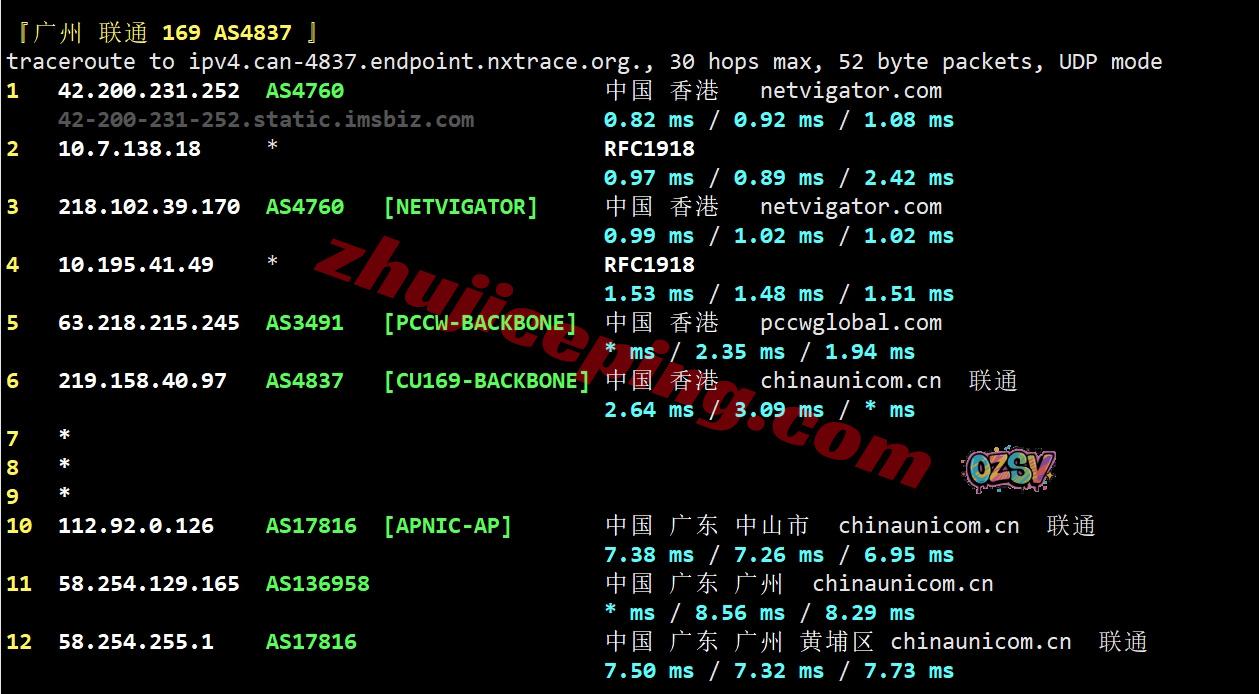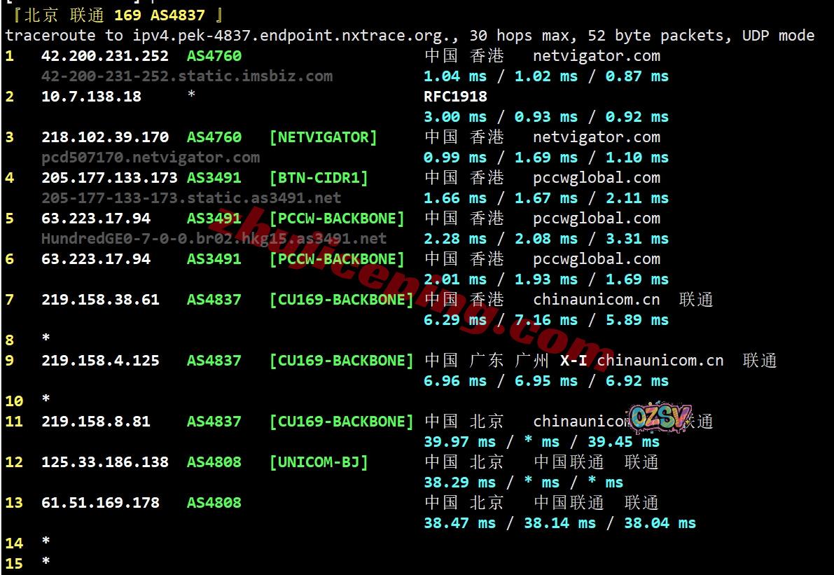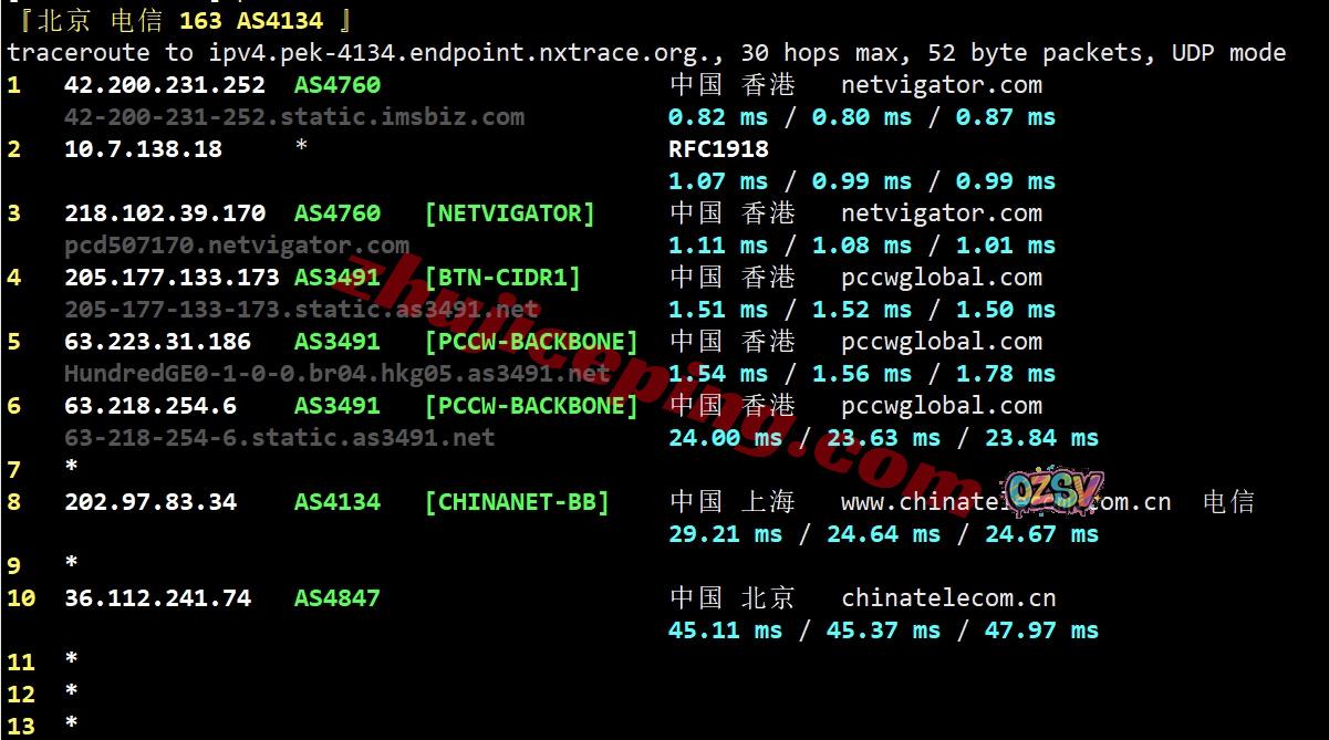 三网回程:都是PCCW出来接运营商在香港的pop后直接回内地骨干网;