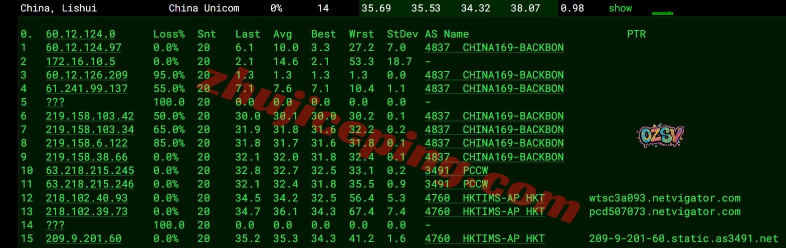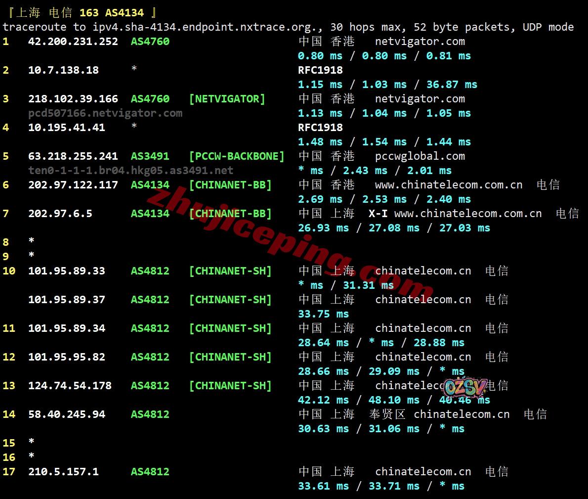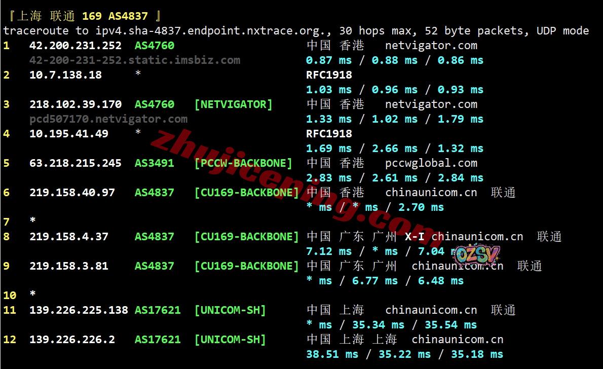 三网回程:都是PCCW出来接运营商在香港的pop后直接回内地骨干网;