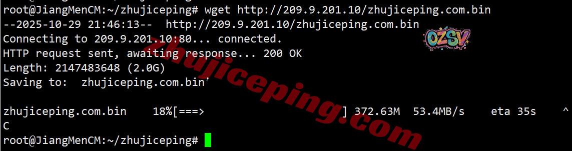 广东江门移动的机器,晚高峰下载测试VPS上的文件的速度: