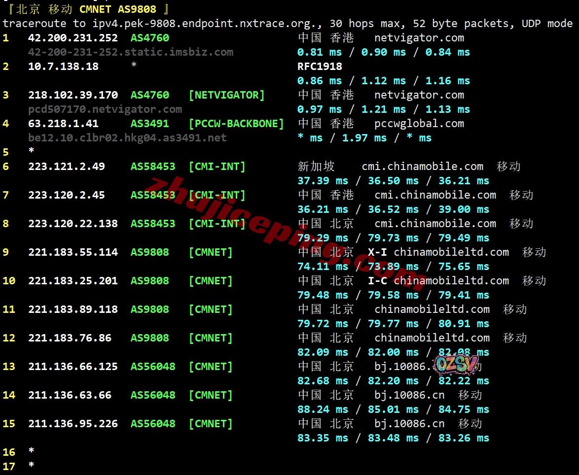 北京方向:PCCW接移动香港CMI节点后回内地骨干 (这里面显示新加坡的实际是数据标注错误)