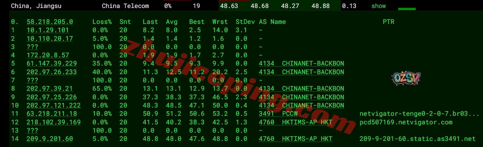 电信回程:从PCCW出来直接接电信香港节点后直接回内地骨干网