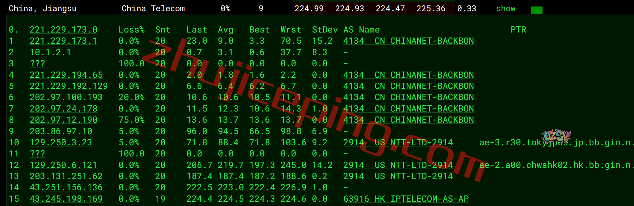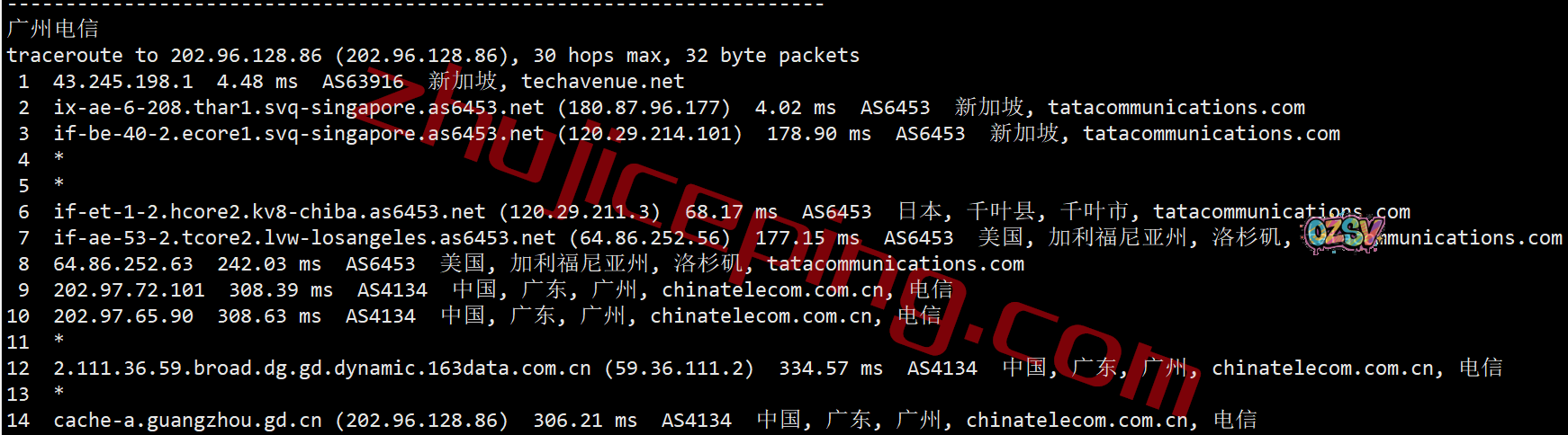 电信回程:走TATA先去日本然后去美国西海岸,从电信圣何塞/洛杉矶节点直连回国