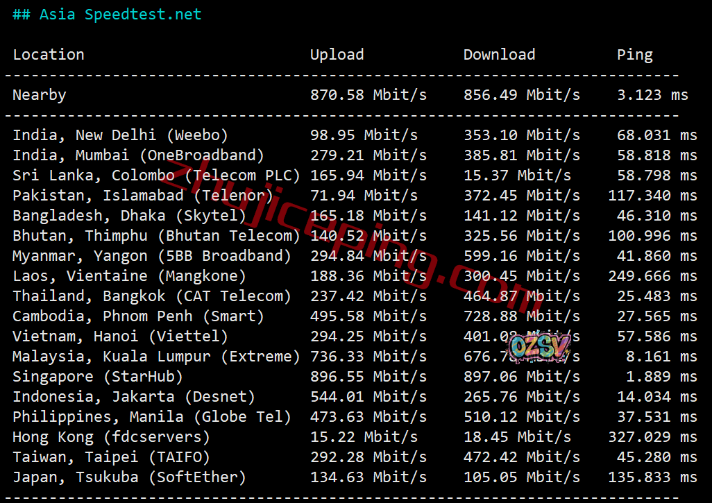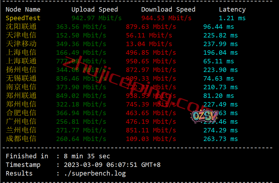 来看看VPS在国内能跑多少上下行带宽吧? speedtest在国内的三网节点测试效果: