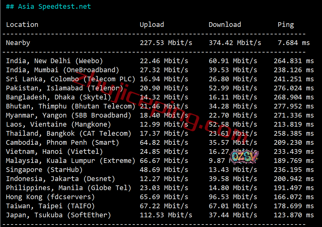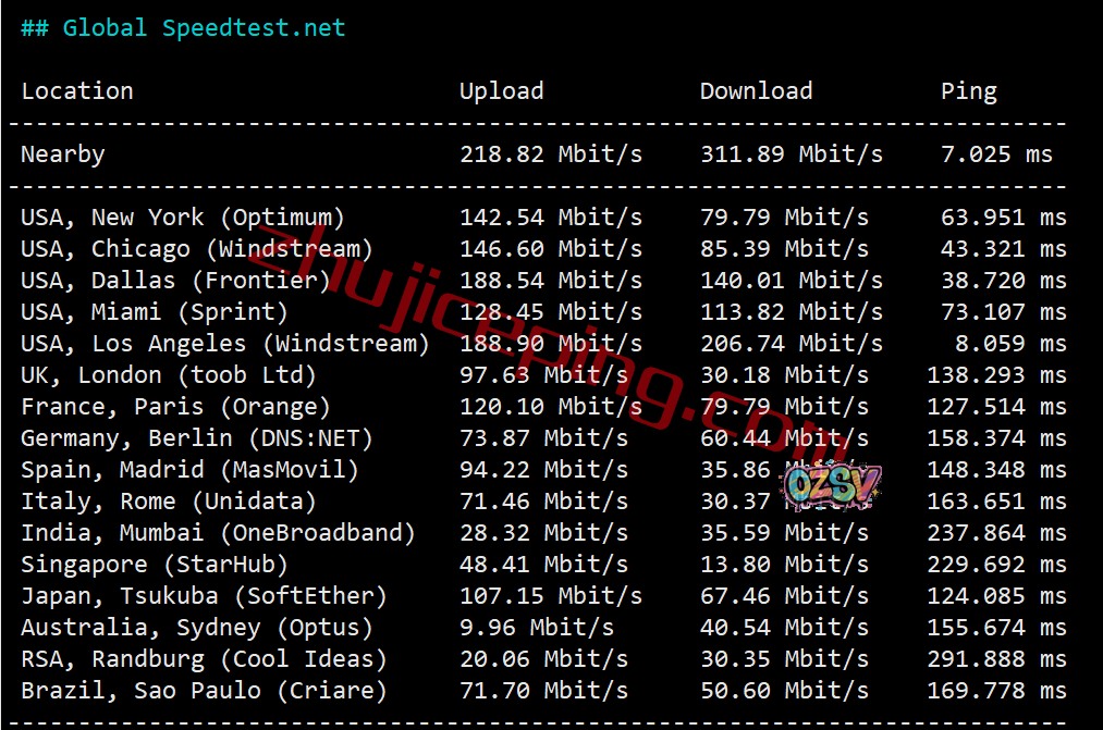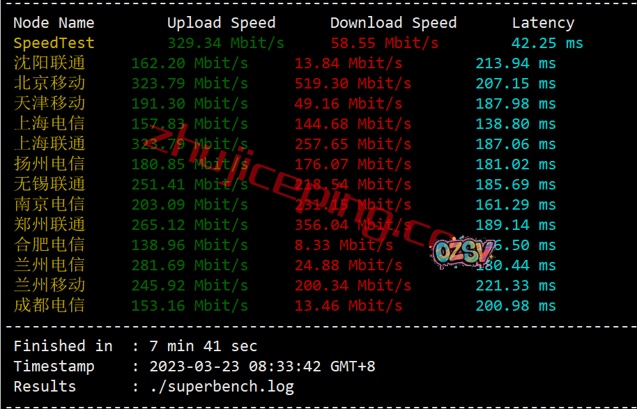 看看VPS在国内能跑到多少的上下行带宽,用的speedtest在国内的三网节点测试: