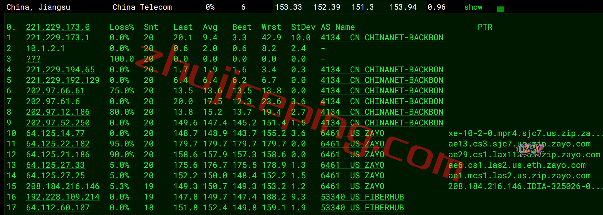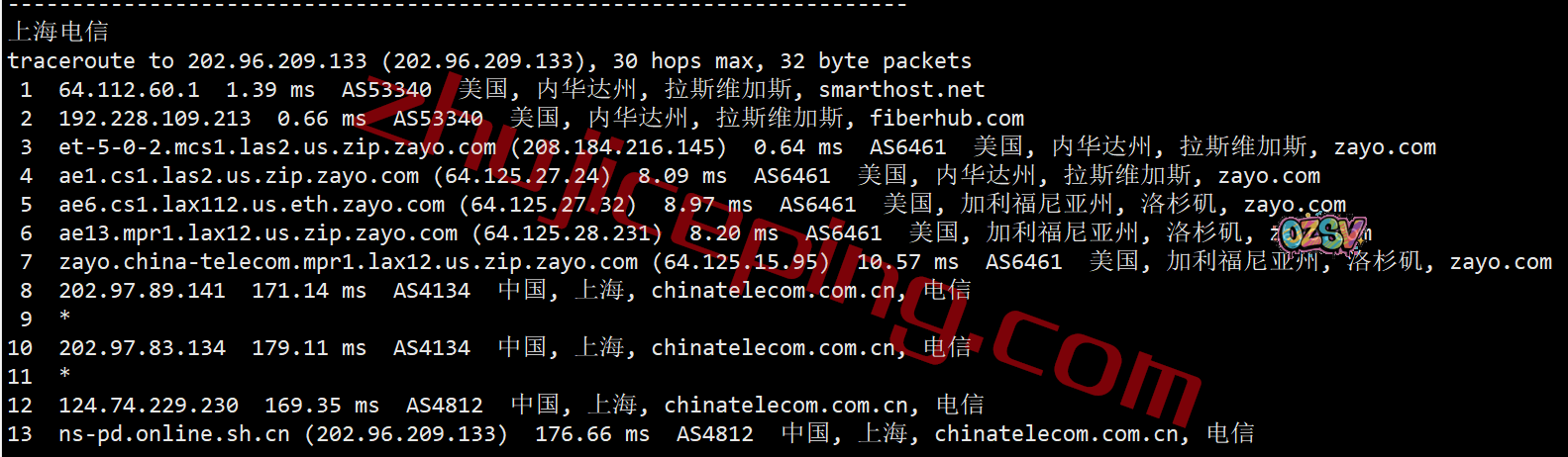 电信回程:走zayo到洛杉矶,从电信与zayo在洛杉矶的pop直连回国