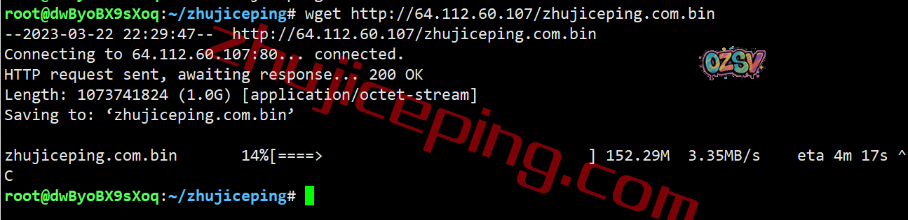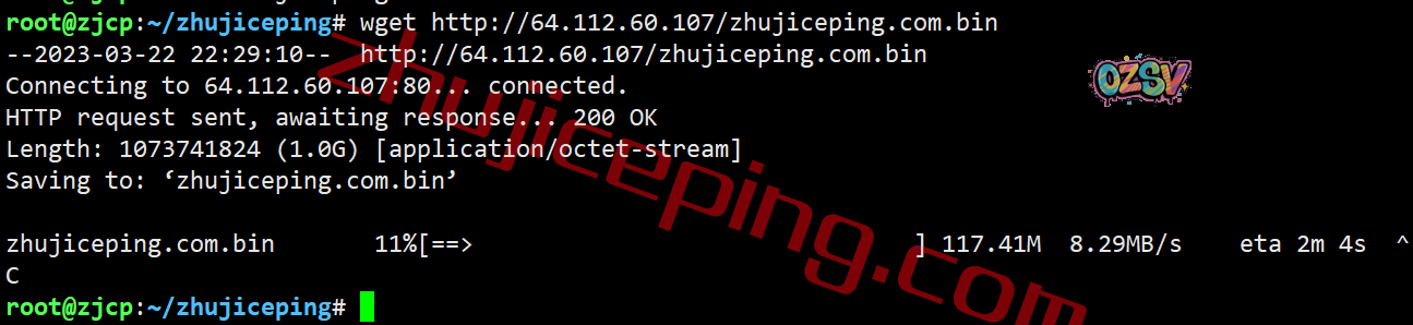 存放在测试小鸡上面的文件,广州电信家庭带宽的直接下载速度: