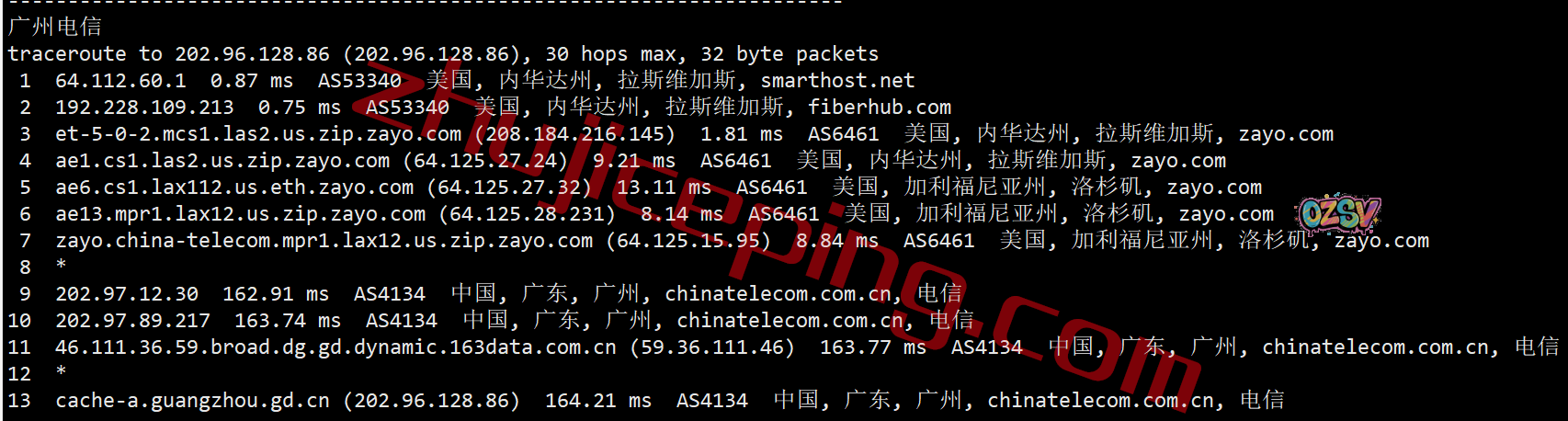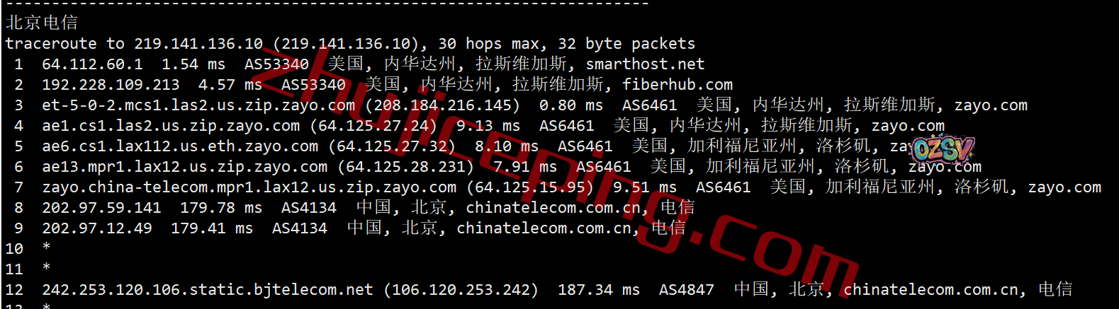 电信去程:直连电信圣何塞节点,然后转zayo经过洛杉矶去拉斯维加斯