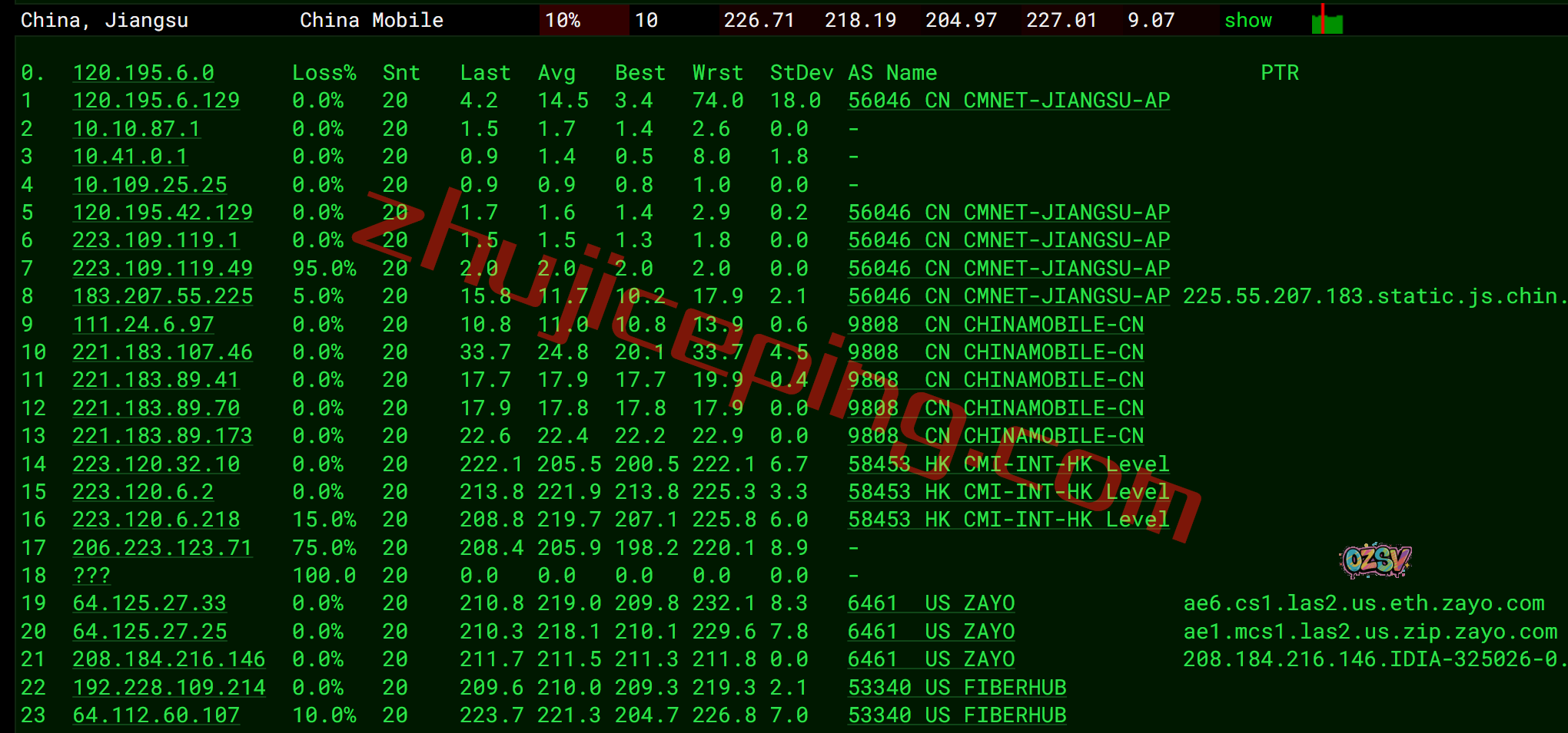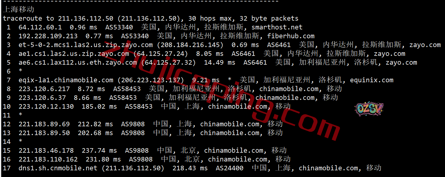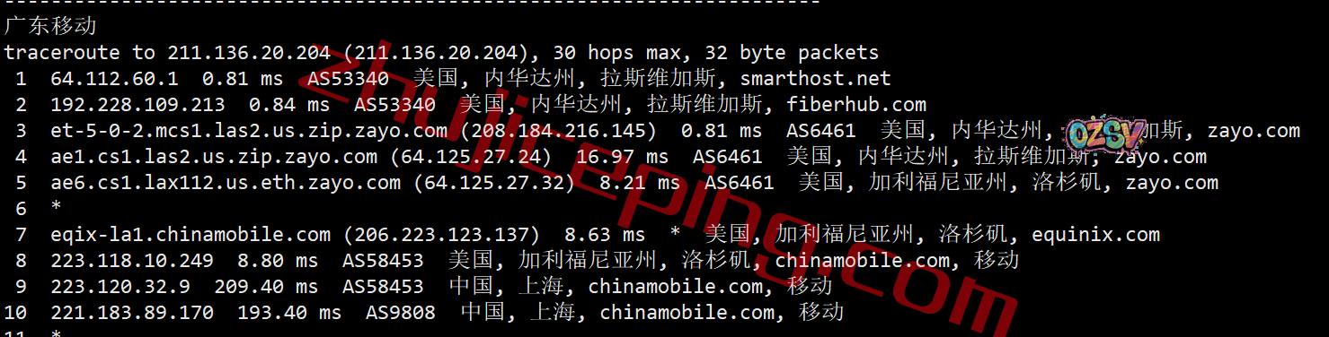 移动回程:走zayo到洛杉矶quinix,然后从移动洛杉矶节点直连回国