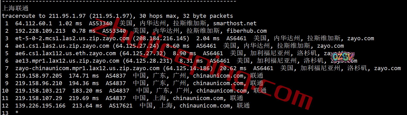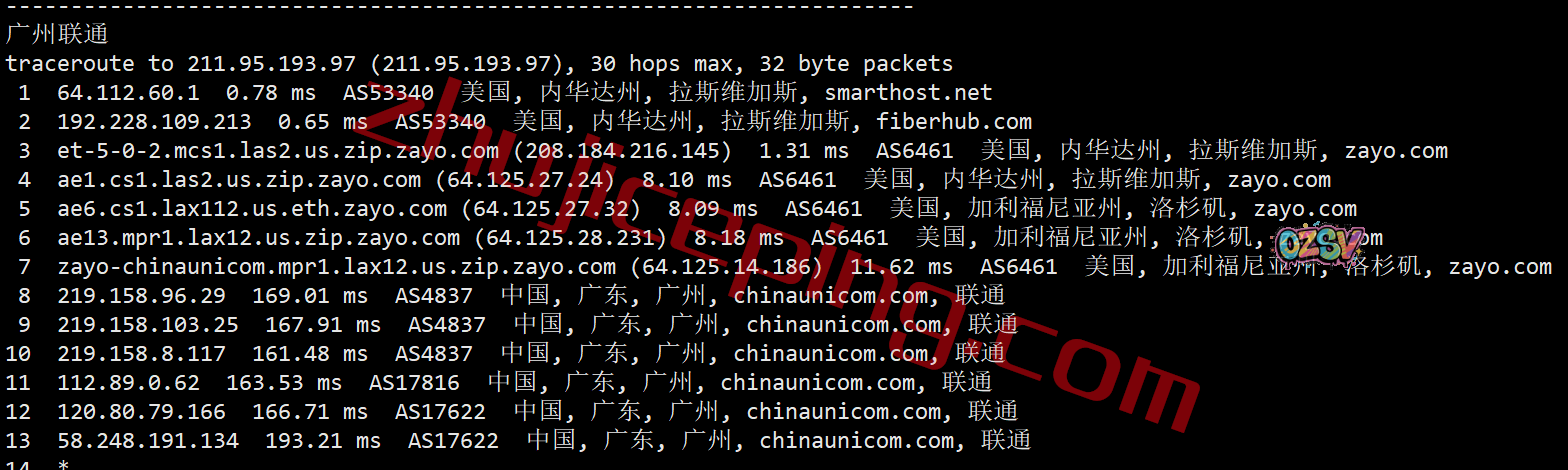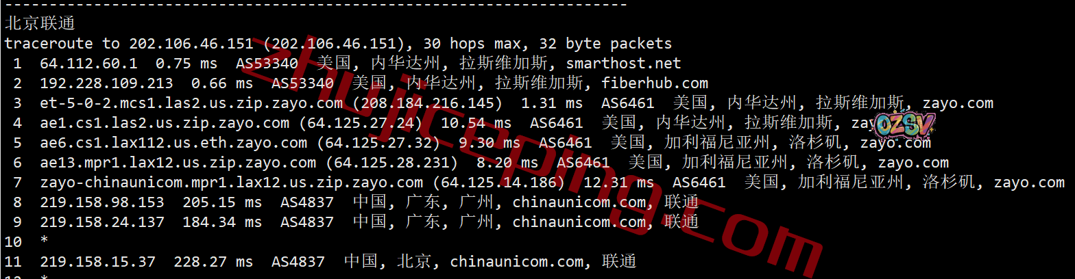 联通去程:直连联通洛杉矶节点,然后转zayo经过洛杉矶去拉斯维加斯