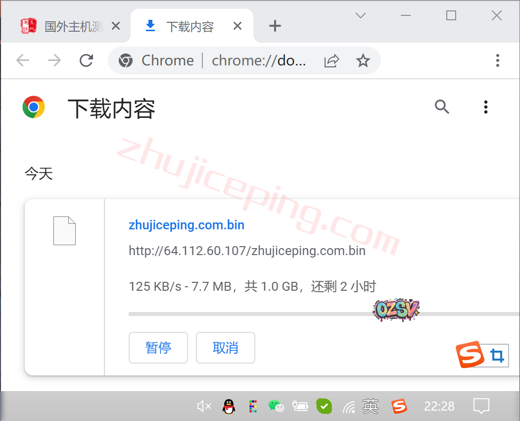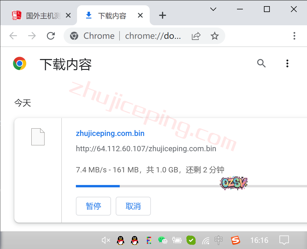 与上面相同,同样的下载测速,我们看看晚高峰的情况吧: