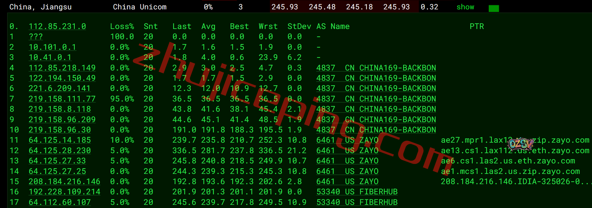联通回程:走zayo到洛杉矶,从联通与zayo在洛杉矶的pop直连回国