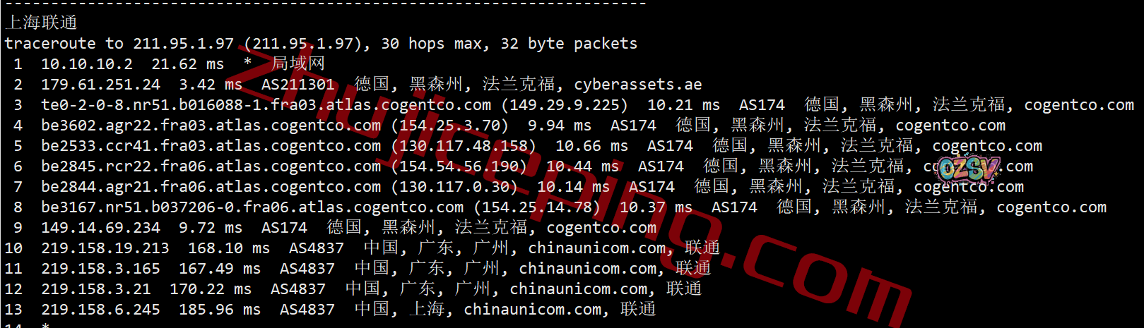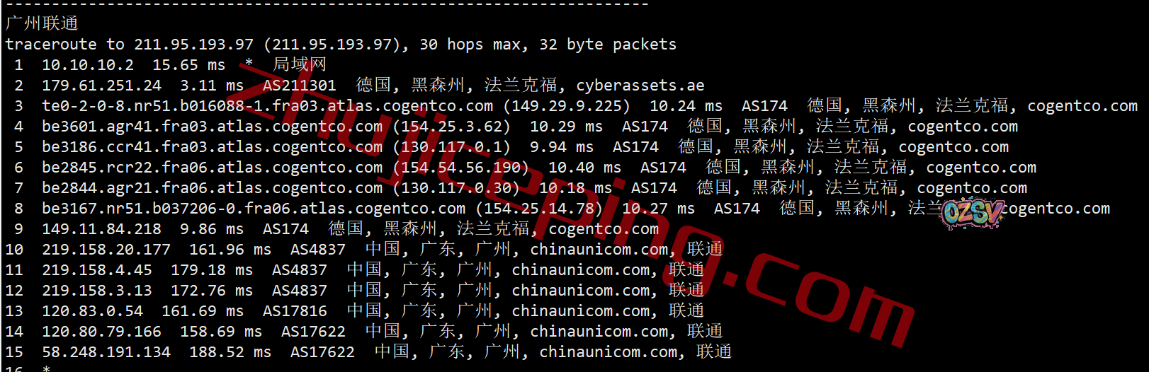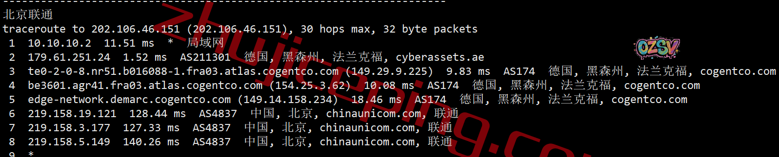 联通回程:走cogent从法兰克福对接联通骨干回来