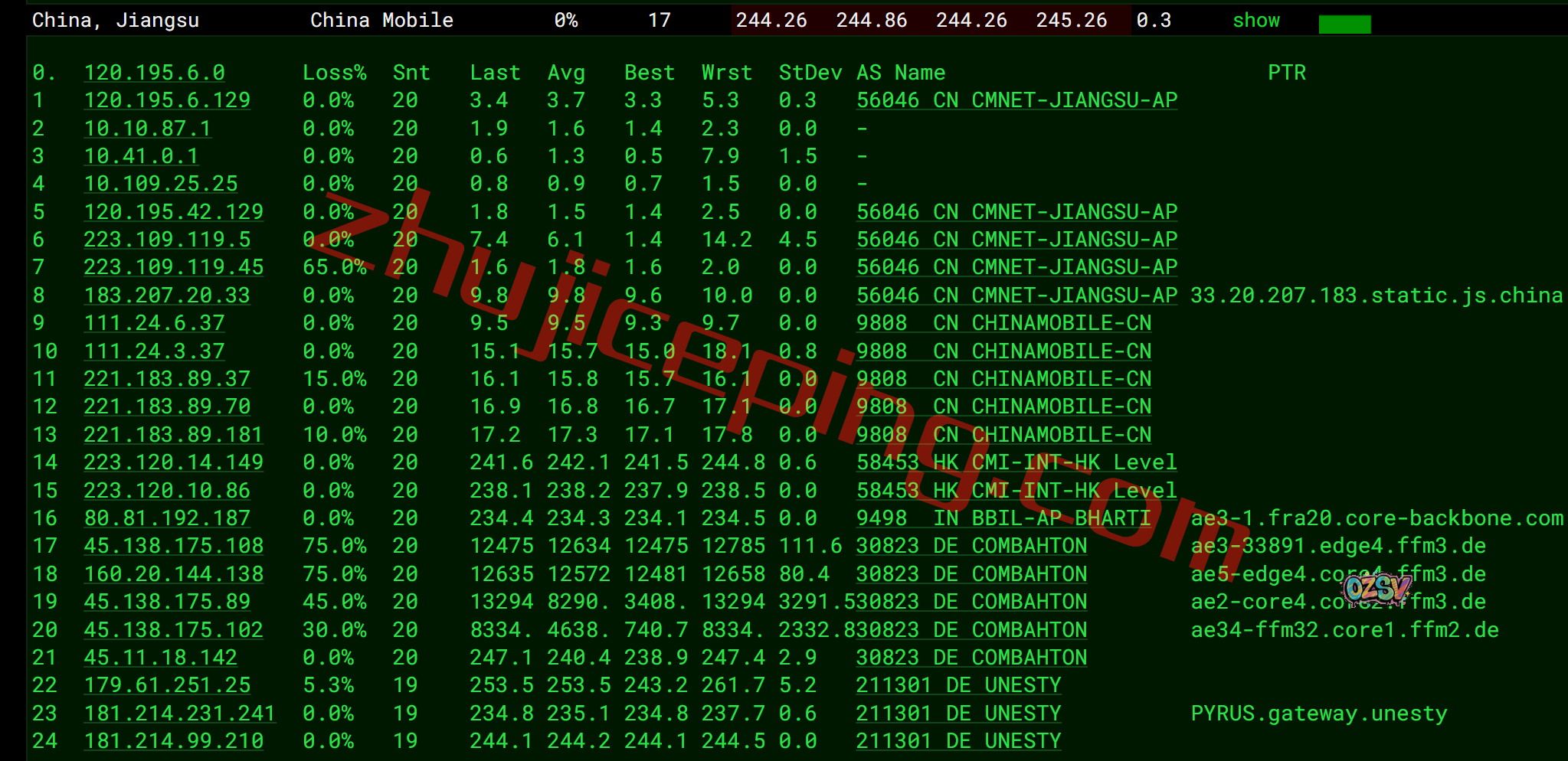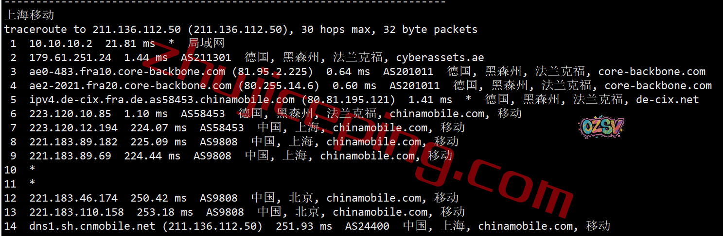 移动去程:直连移动法兰克福节点然后接ffm3.de