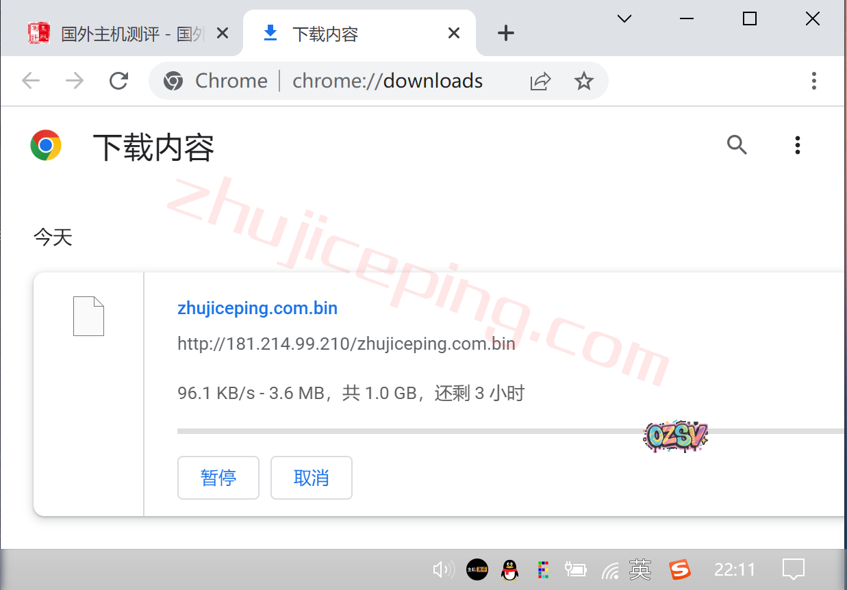 存放在测试小鸡上面的文件,广州电信家庭带宽“晚高峰”的下载速度: