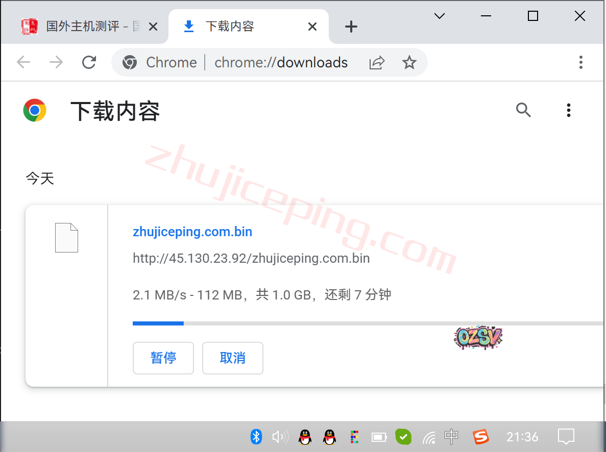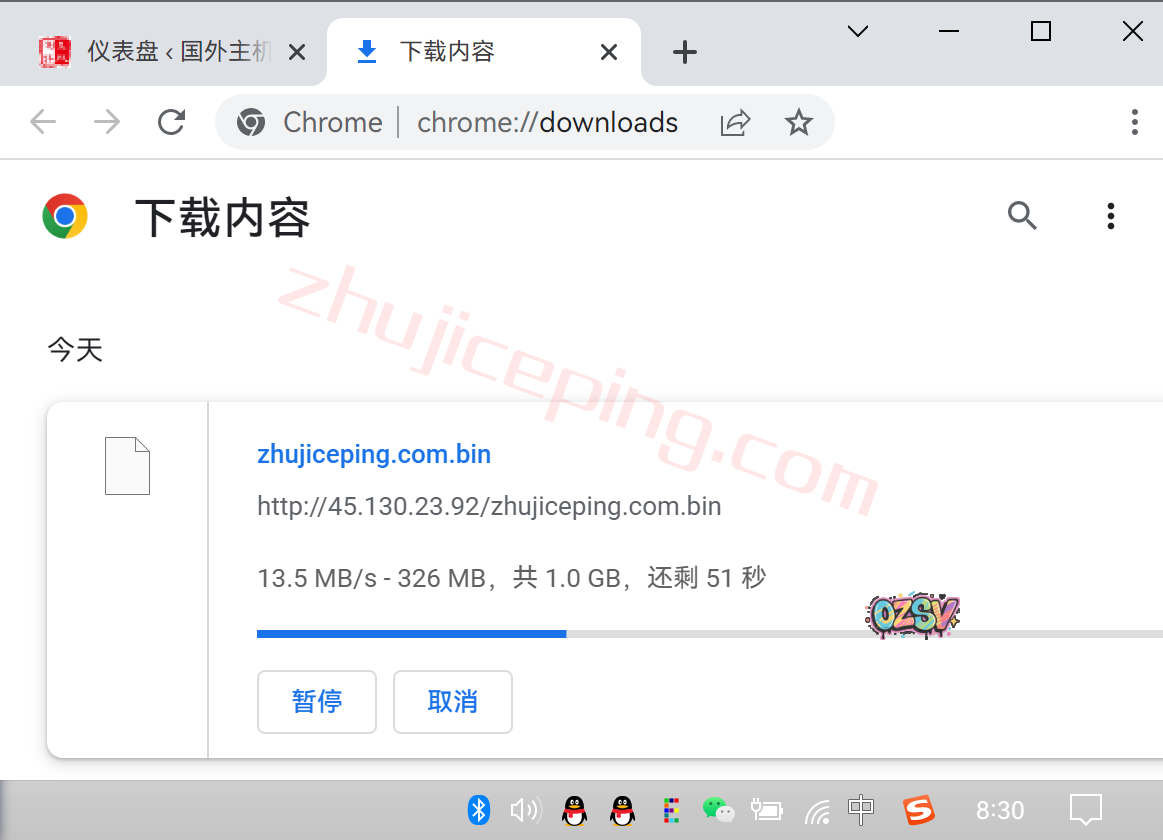 存放在测试小鸡上面的文件,广州电信家庭带宽直接浏览器下载,速度大致如下: