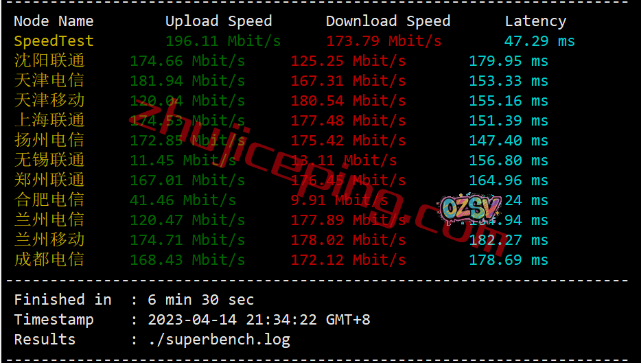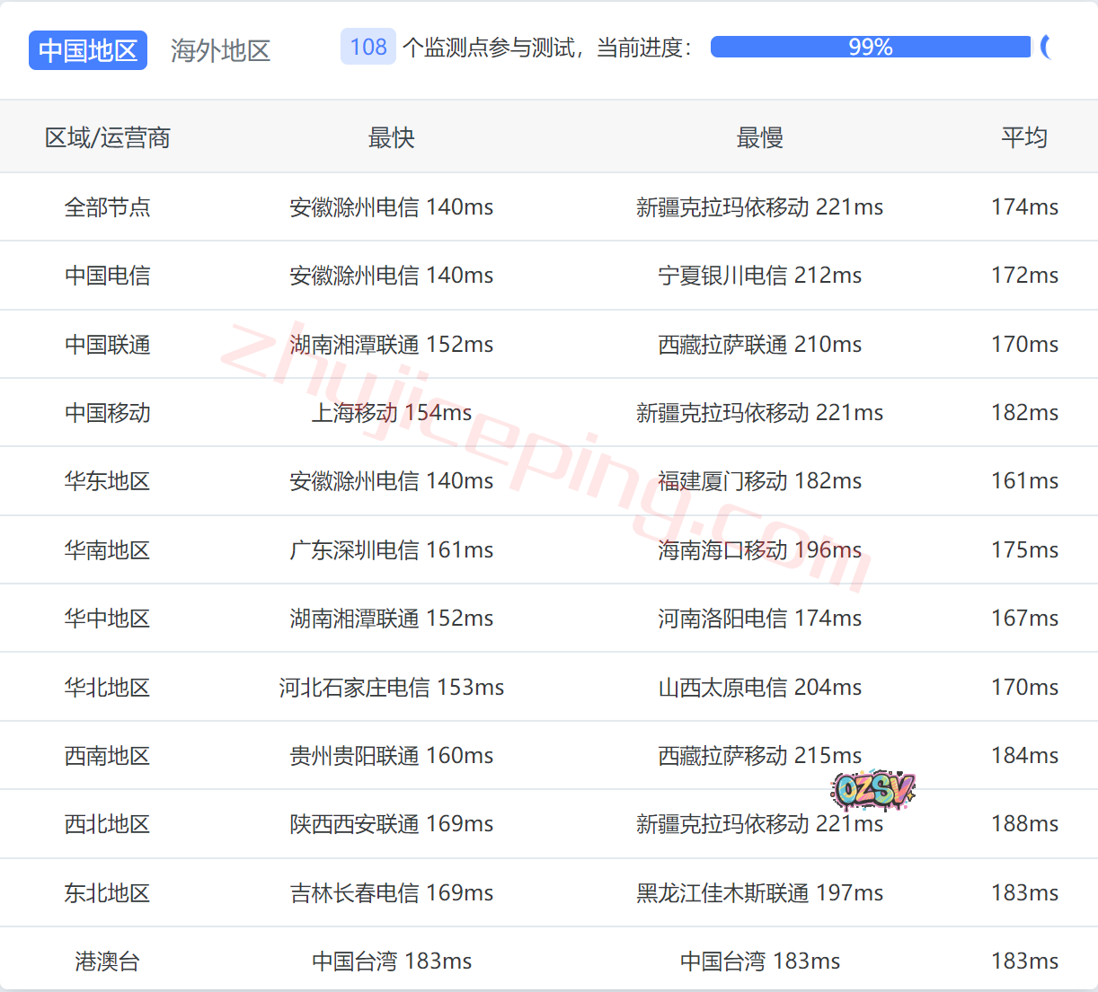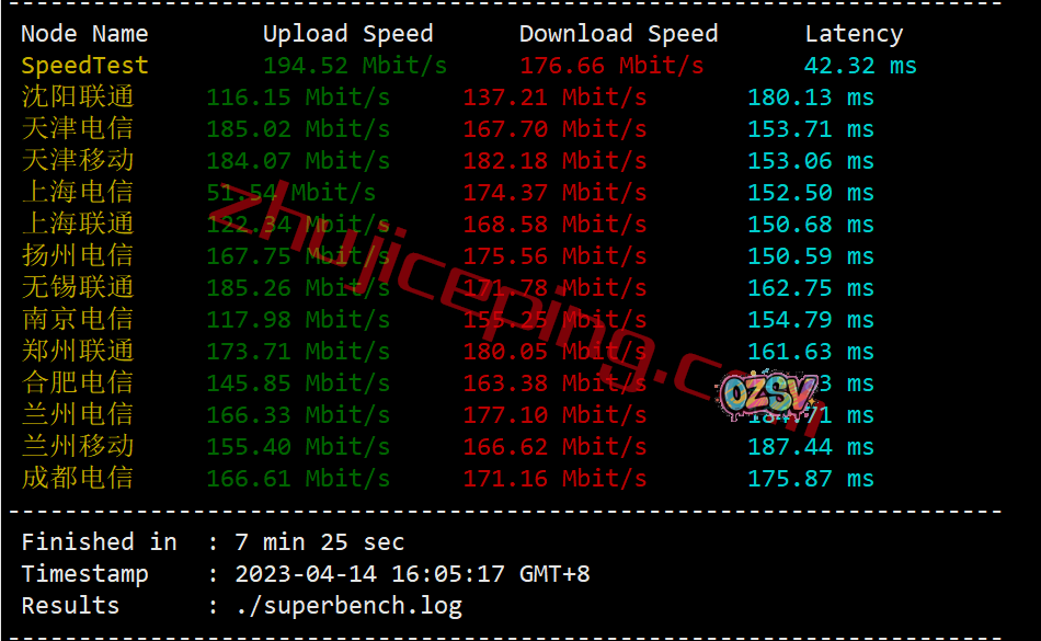 用speedtest.net在国内的三网多节点跑一圈上下行测试,看看能冲到多少?大致如下: