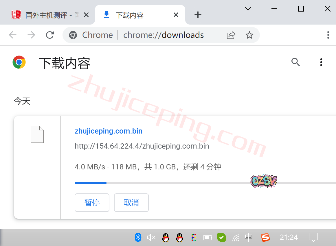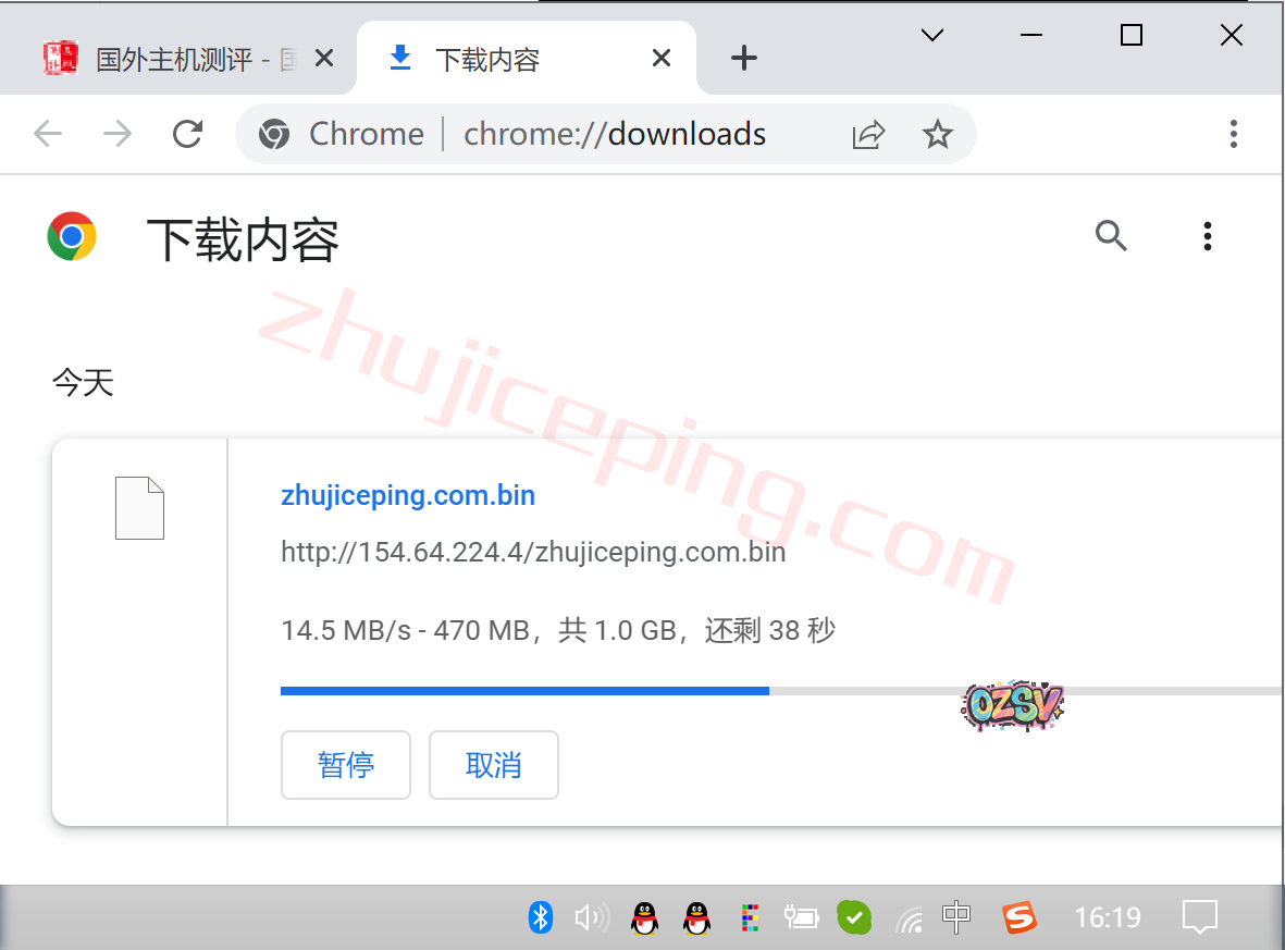 存放在测试小鸡上面的文件,广州电信家庭带宽,直接浏览器下载,看看速度: