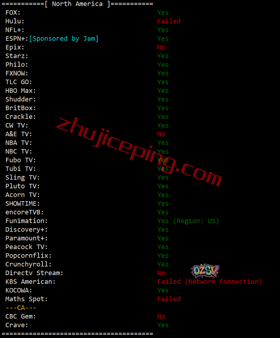 部分北美流媒体解锁测试,可以解锁不少东西: