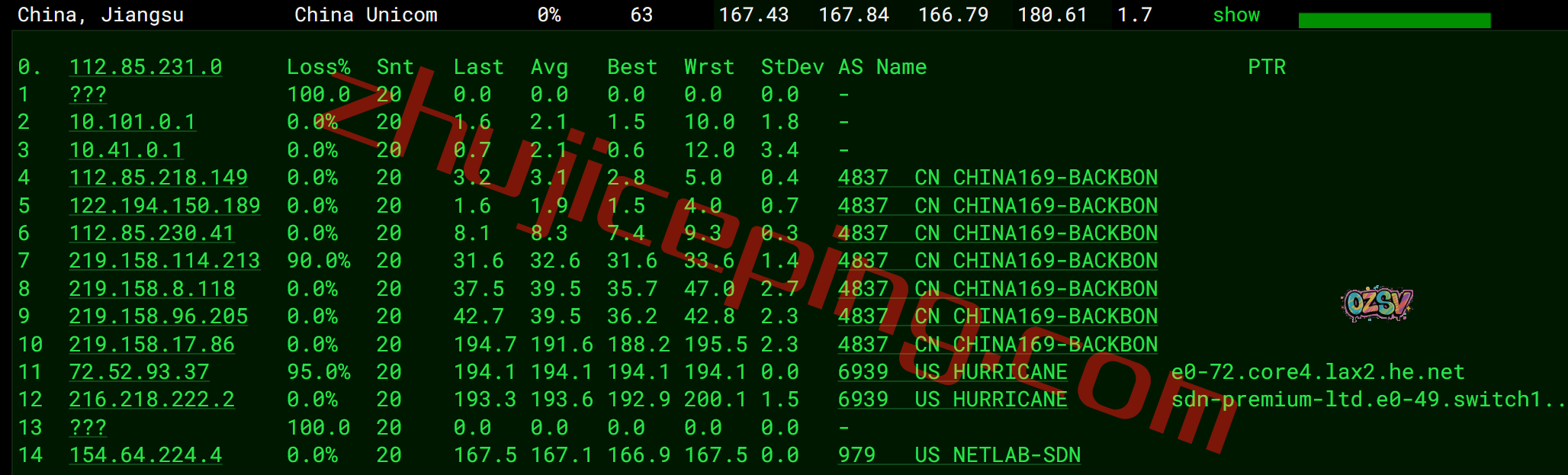 联通回程:强制AS9929,210.78.x.x段基本上都是AS9929