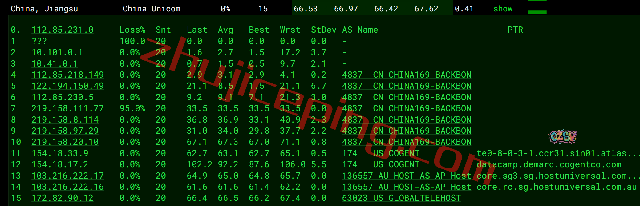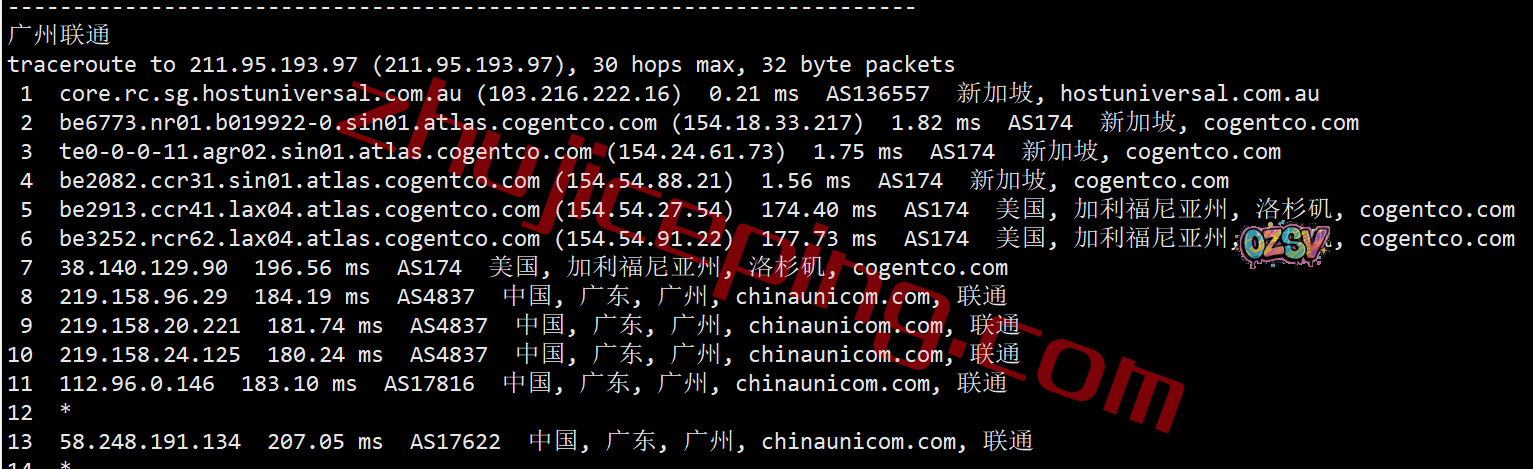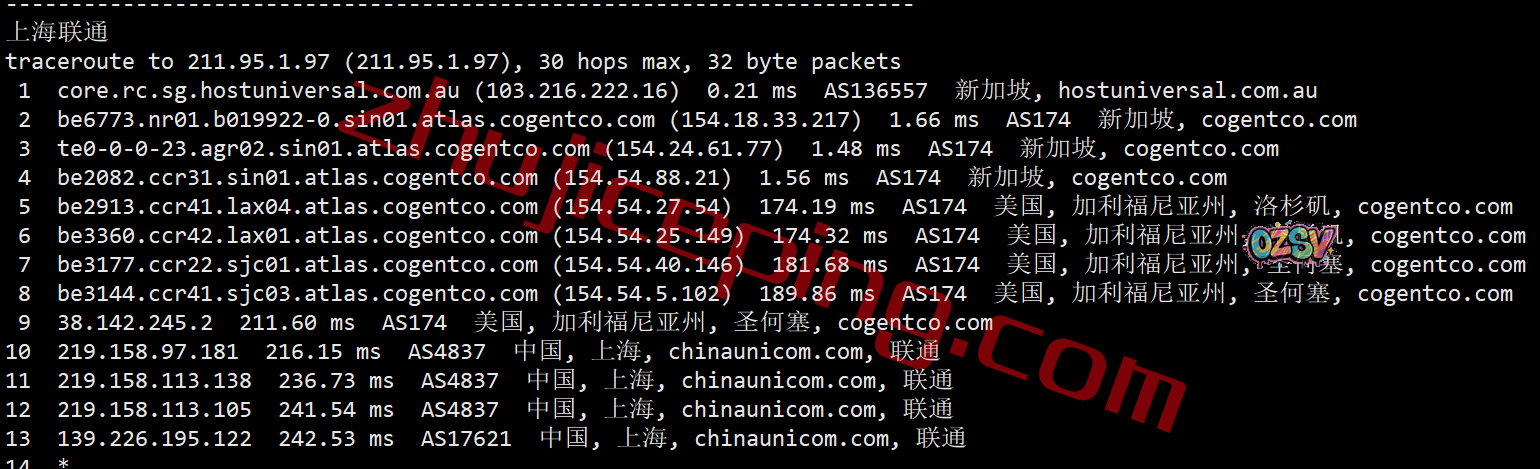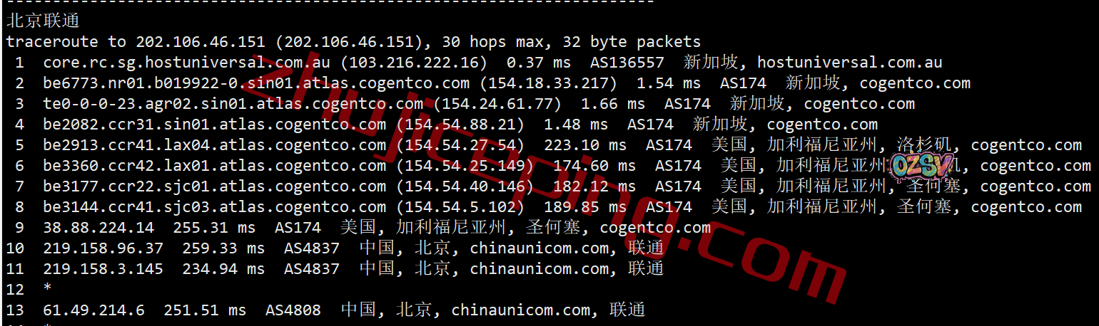 联通回程:全部走cogent去洛杉矶/圣何塞然后回国,纯国际线路