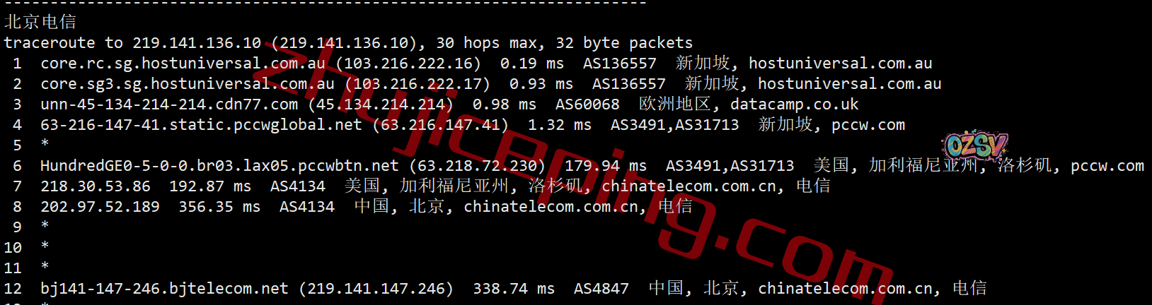 北京方向:走PCCW去洛杉矶,从电信洛杉矶节点直连回国