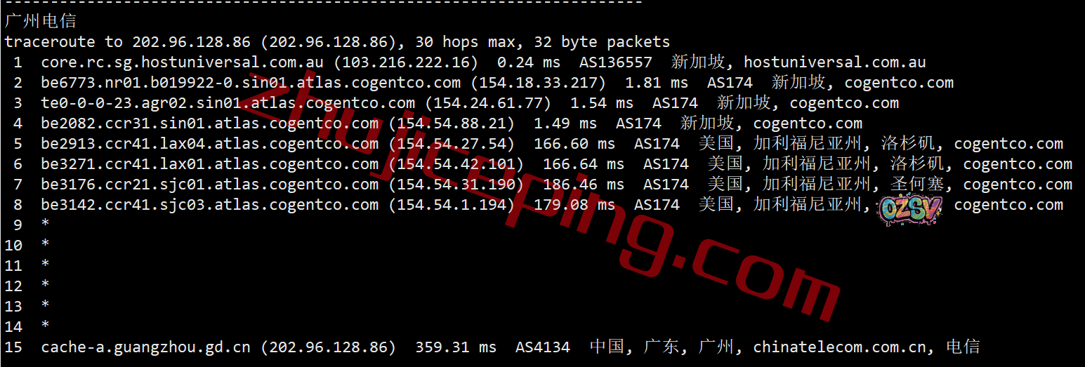 广州方向:走cogent去美国洛杉矶、圣何塞再回来,纯国际线路