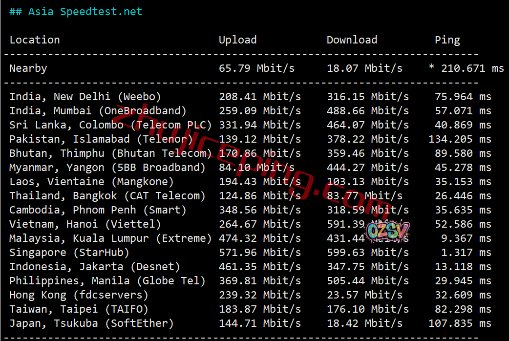 继续跑speedtest,关注亚洲区域内的节点的效果: