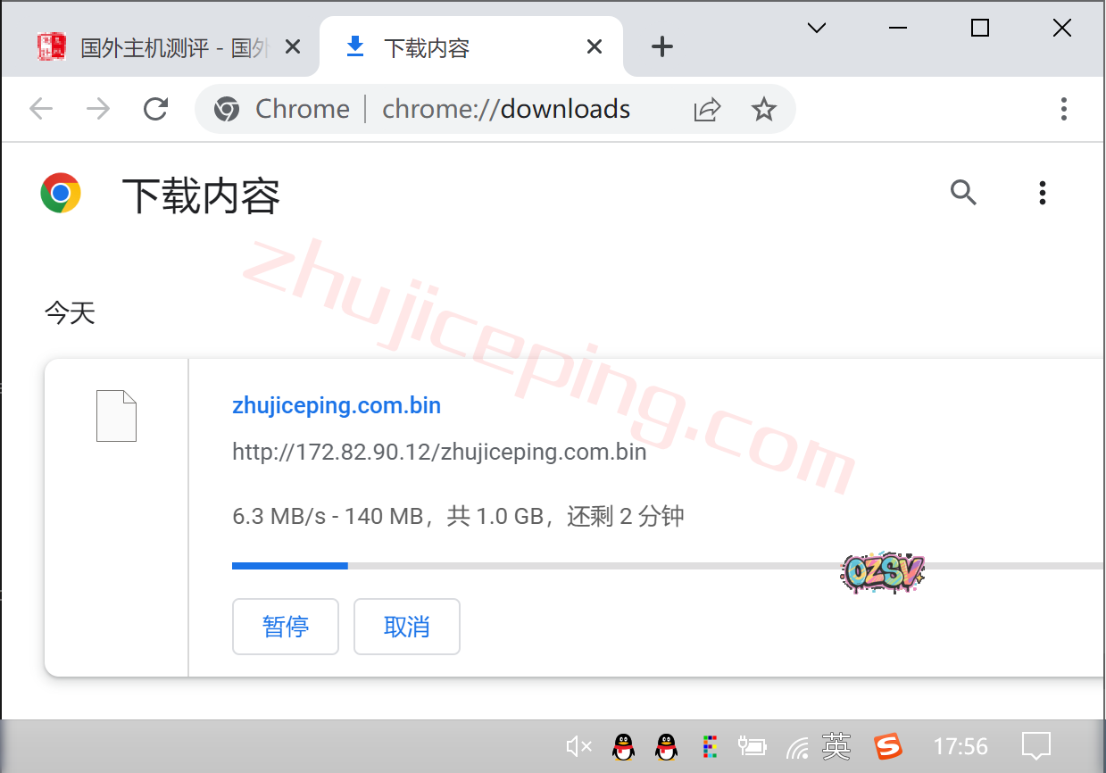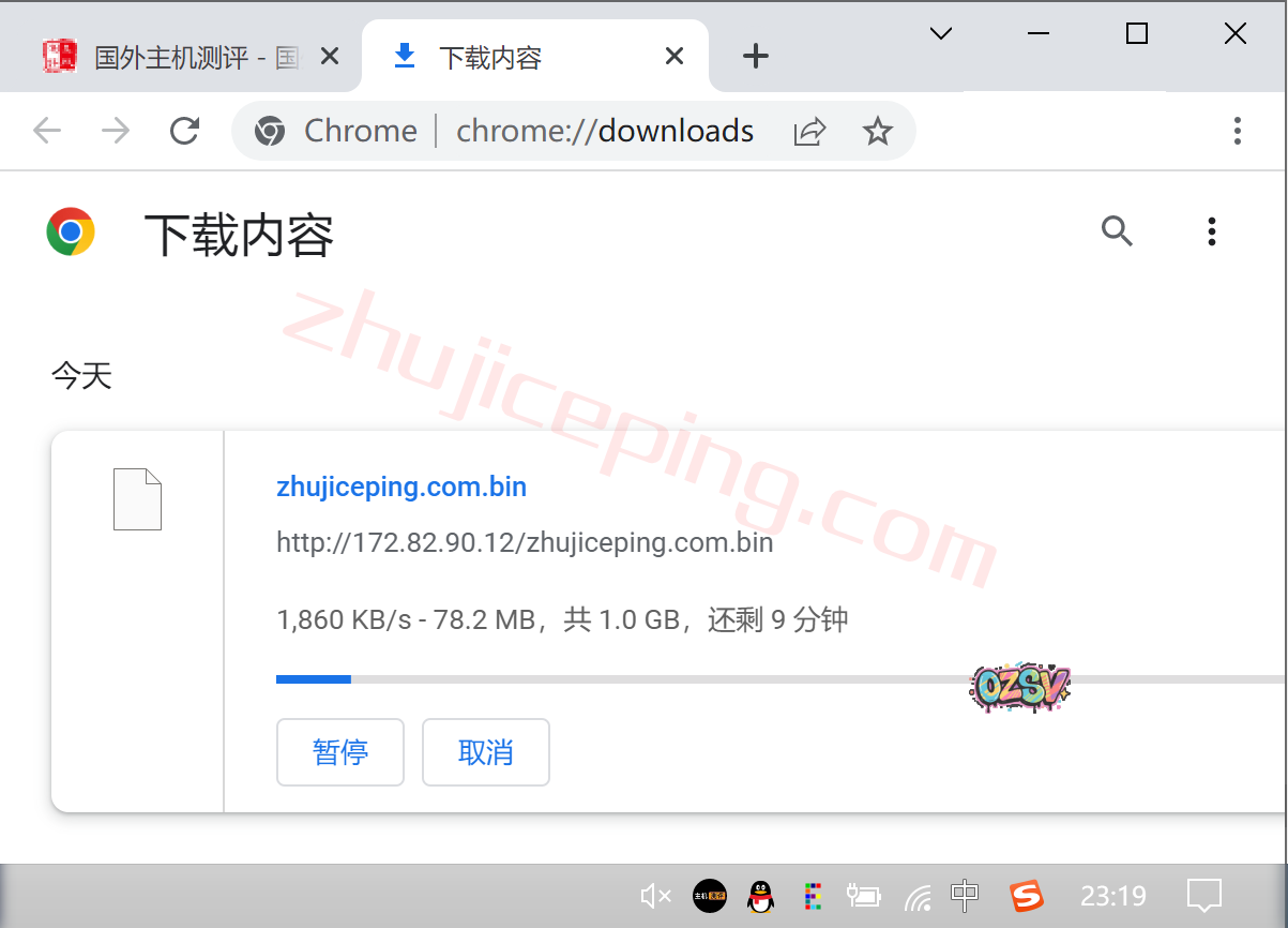 存放在测试小鸡上面的文件,广州电信家庭带宽,用浏览器直接下载,看看速度: