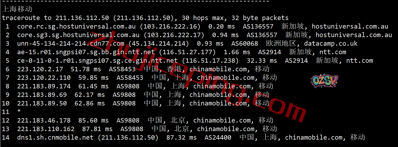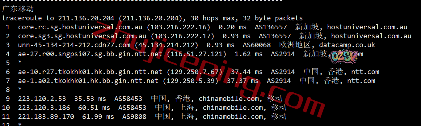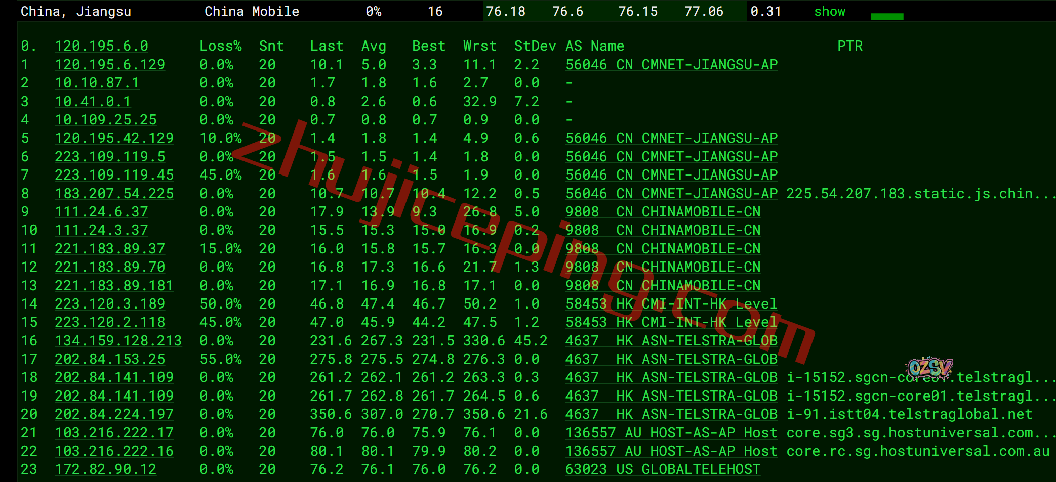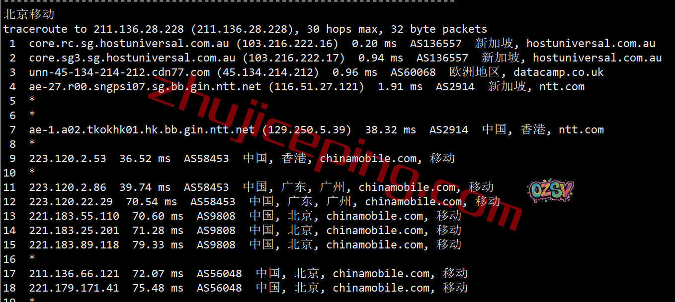 移动去程:移动CMI在香港转telstra国际去新加坡,也不知道为毛延迟这么高