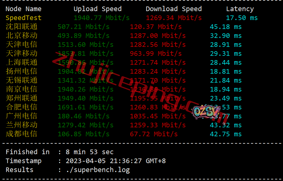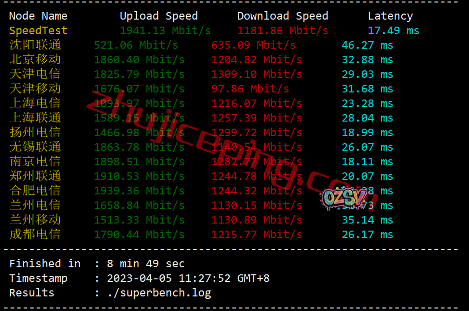 再来看看speedtest.net在国内三网的多节点,我们跑一下,看看上下行能到多少吧?2Gbps带宽,上行超过1900Mbps的还不少: