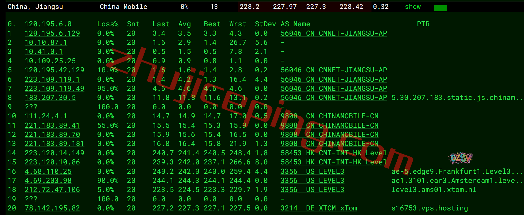 移动去程:走CMI直达德国法兰克福节点,然后转level3去荷兰