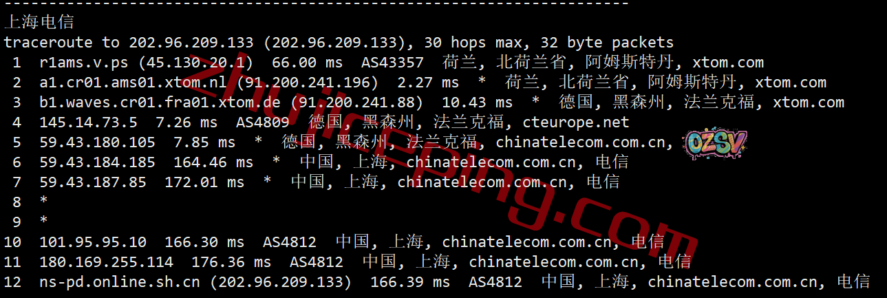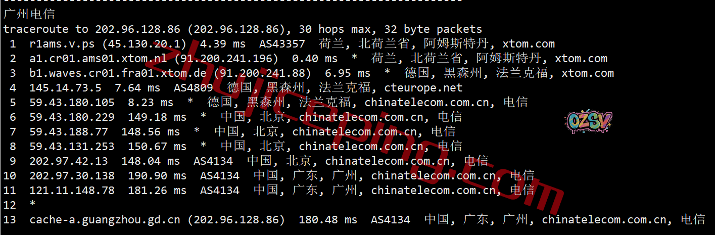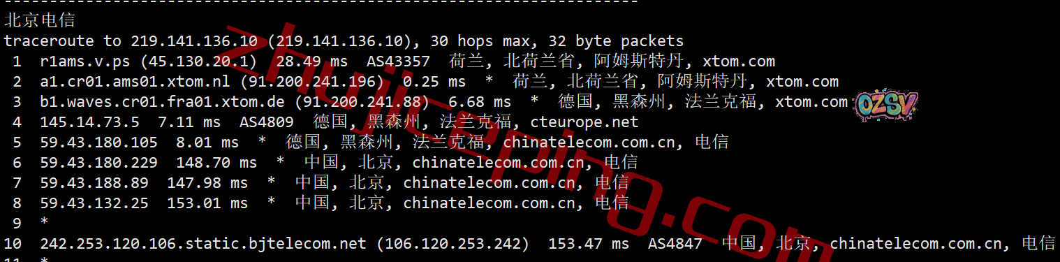 电信去程:走CN2直连电信德国法兰克福节点然后去荷兰