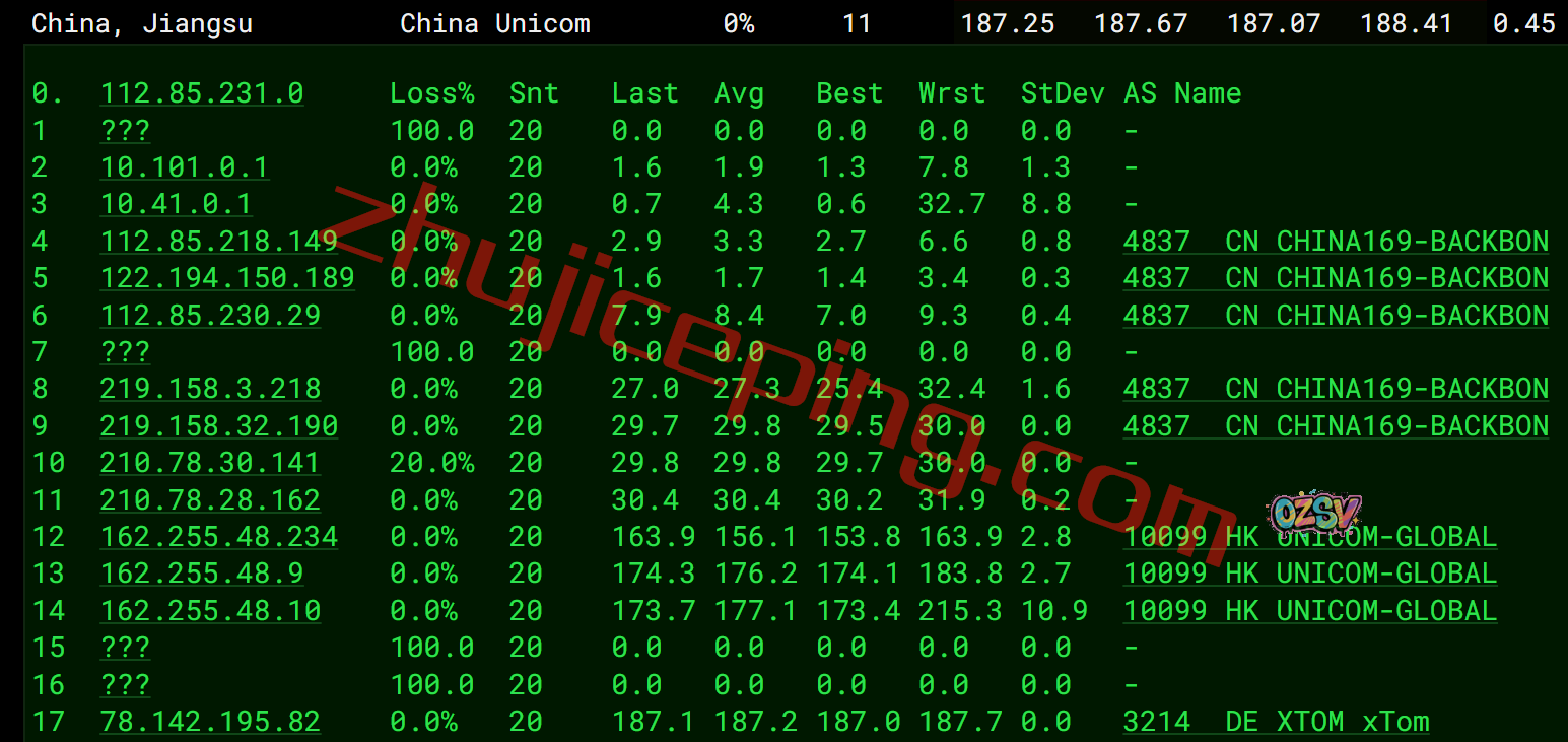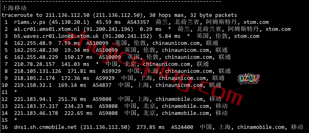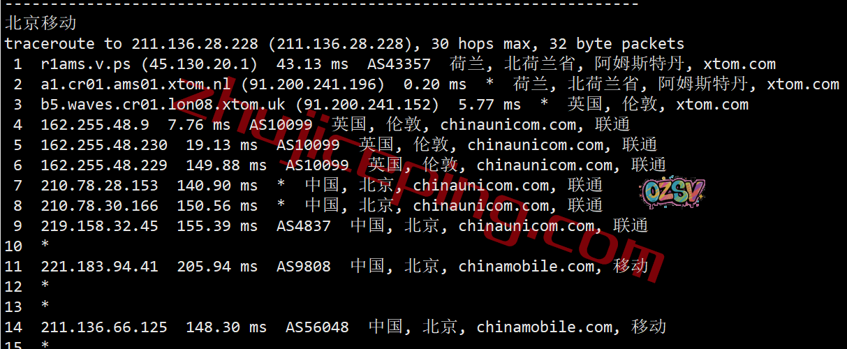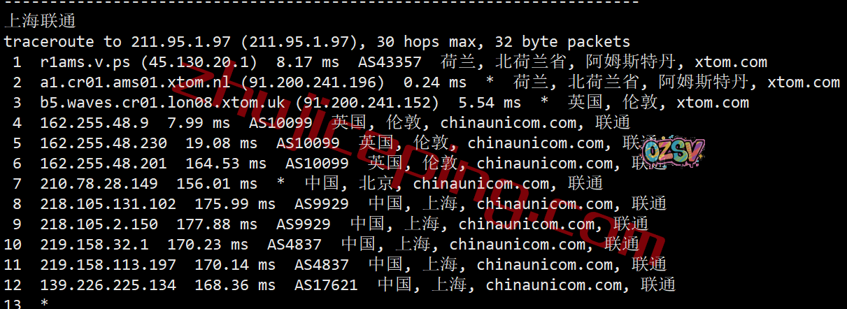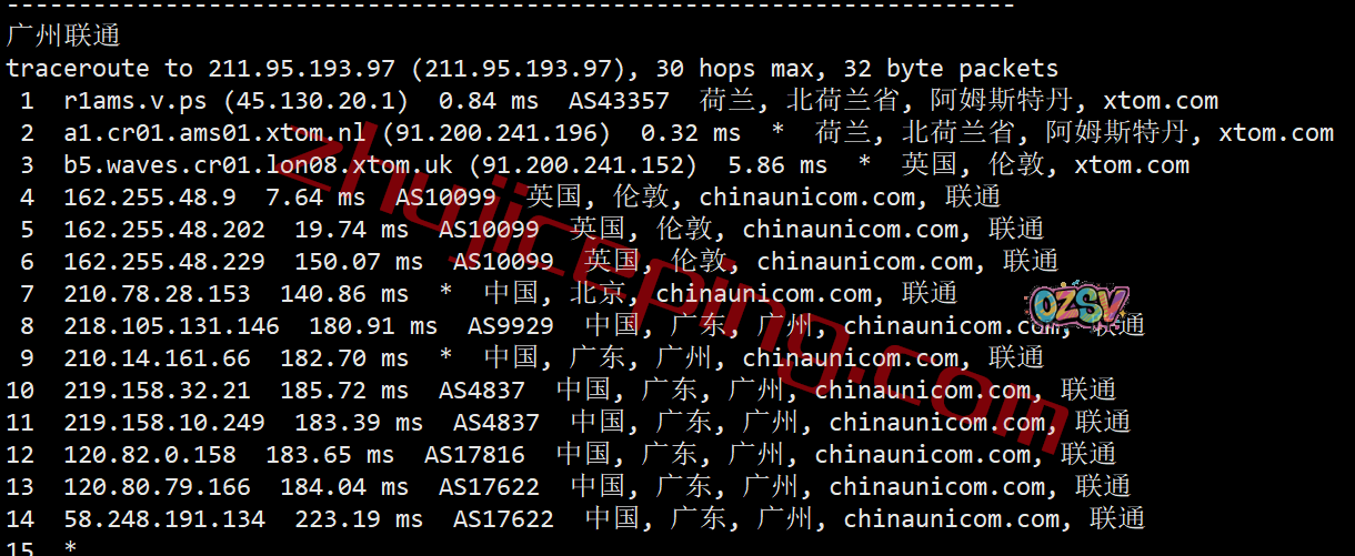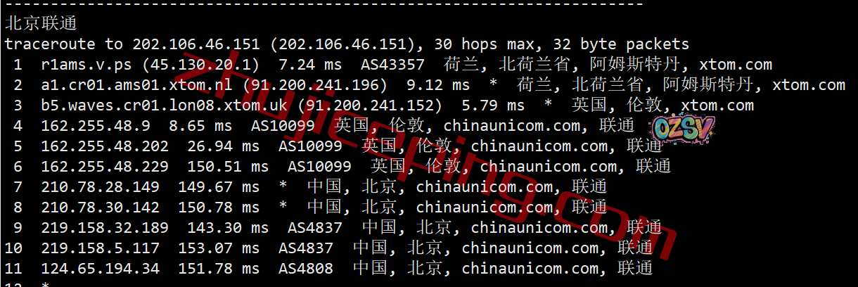 联通去程:AS4837接AS10099直达英国联通节点然后去荷兰