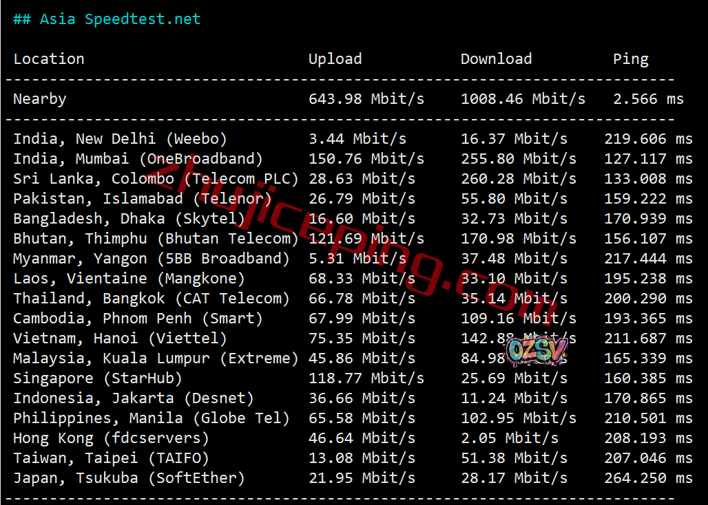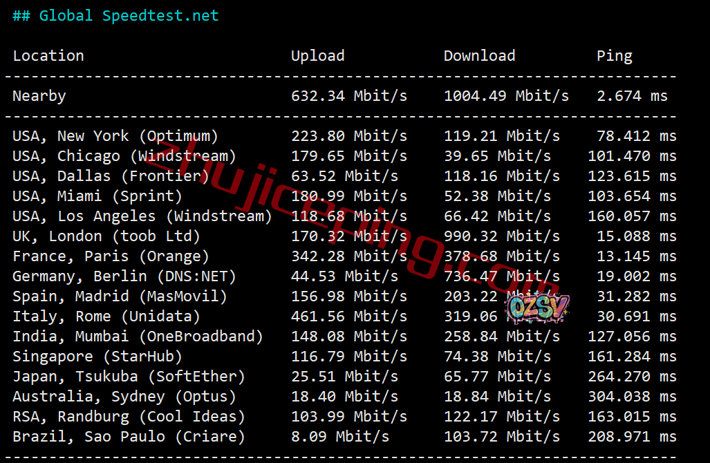 继续跑一下speedtest的部分国际节点,来看看数据: