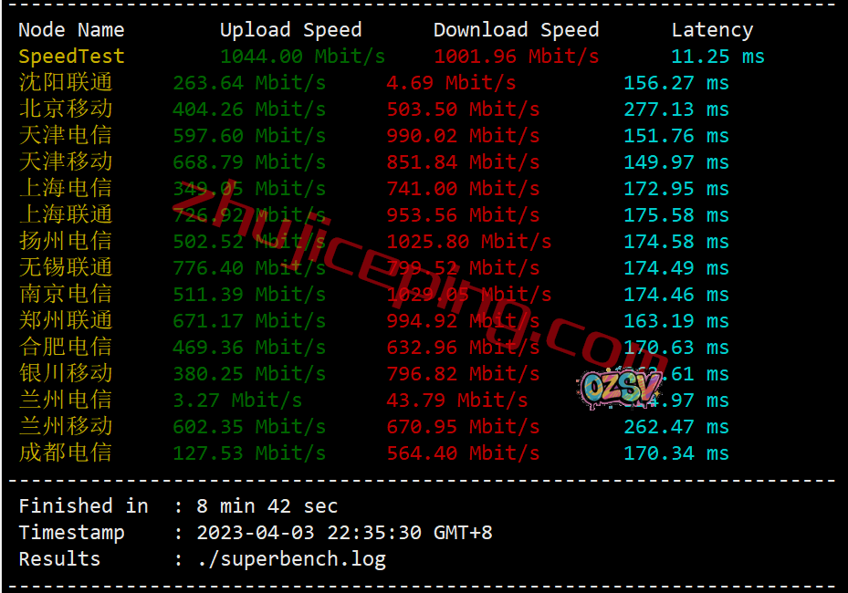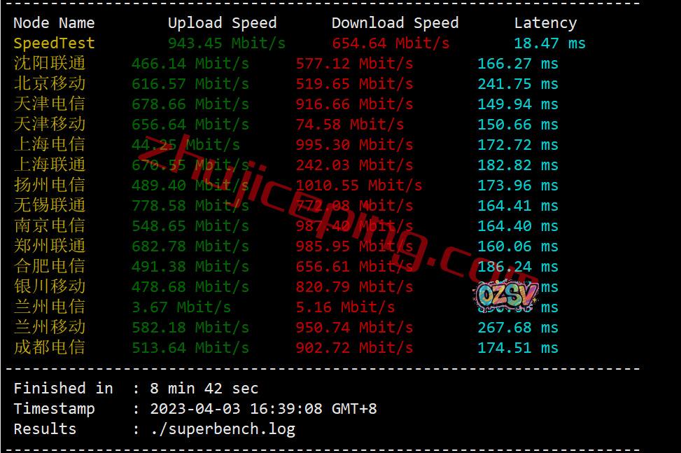 来看看这个高端VPS在国内能跑多少带宽吧,上下行的测试数据如下: