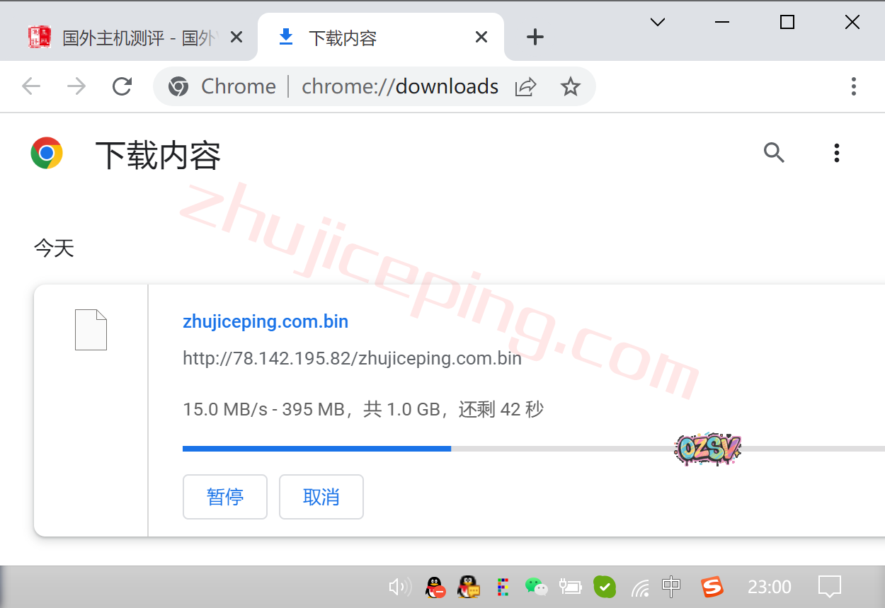 存放在测试小鸡上面的文件,广州电信家庭带宽的下载速度如下:
