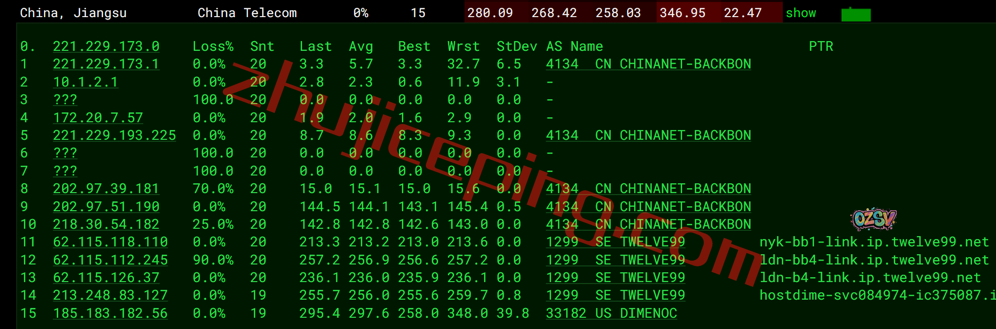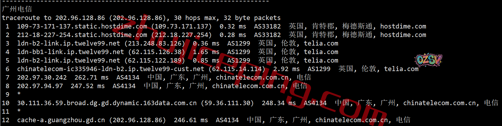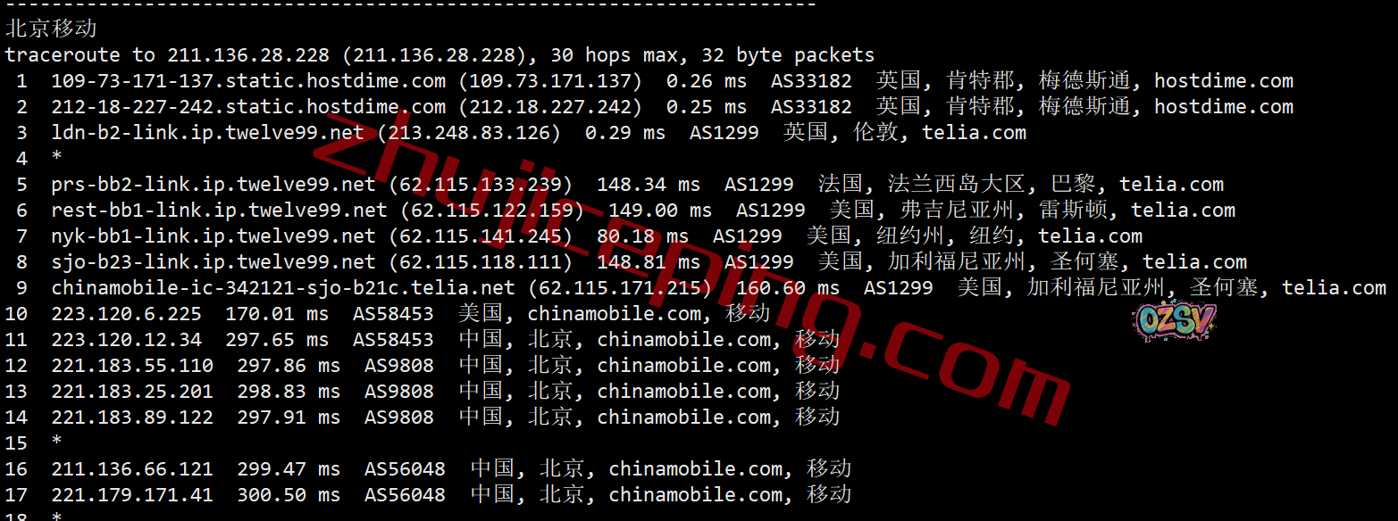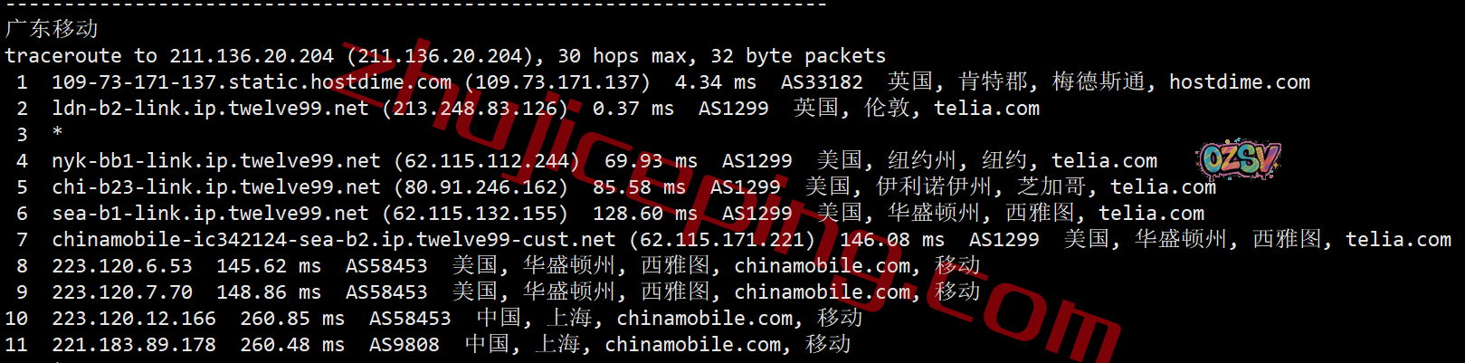 北京/广州方向:走telia经过法国、美国东岸到西岸,从移动西岸节点直连回国