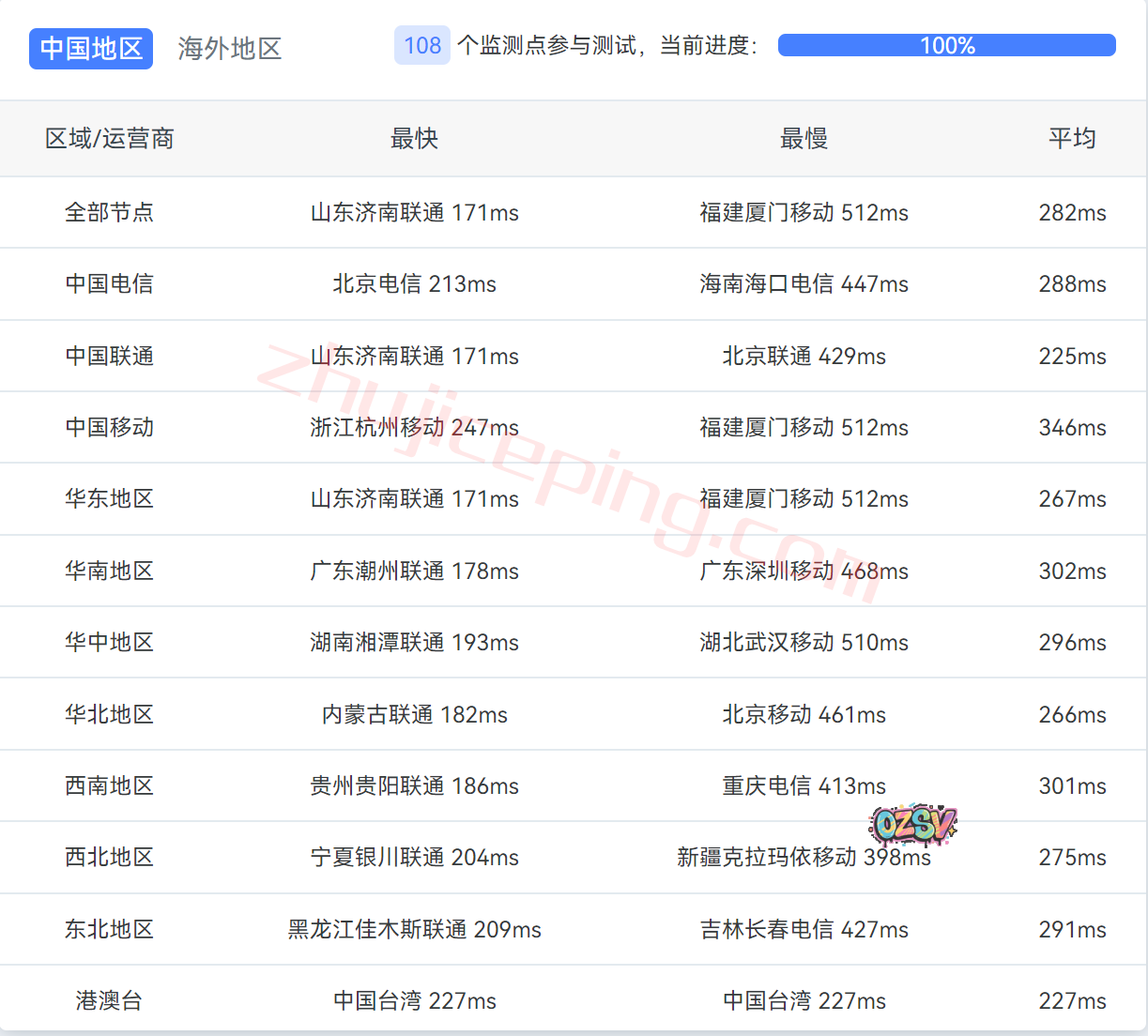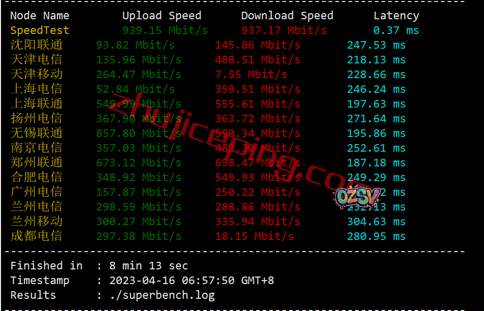 speedtest在国内的三网不同节点跑一圈,看看上下行能达到多少?大致测试结果如下: