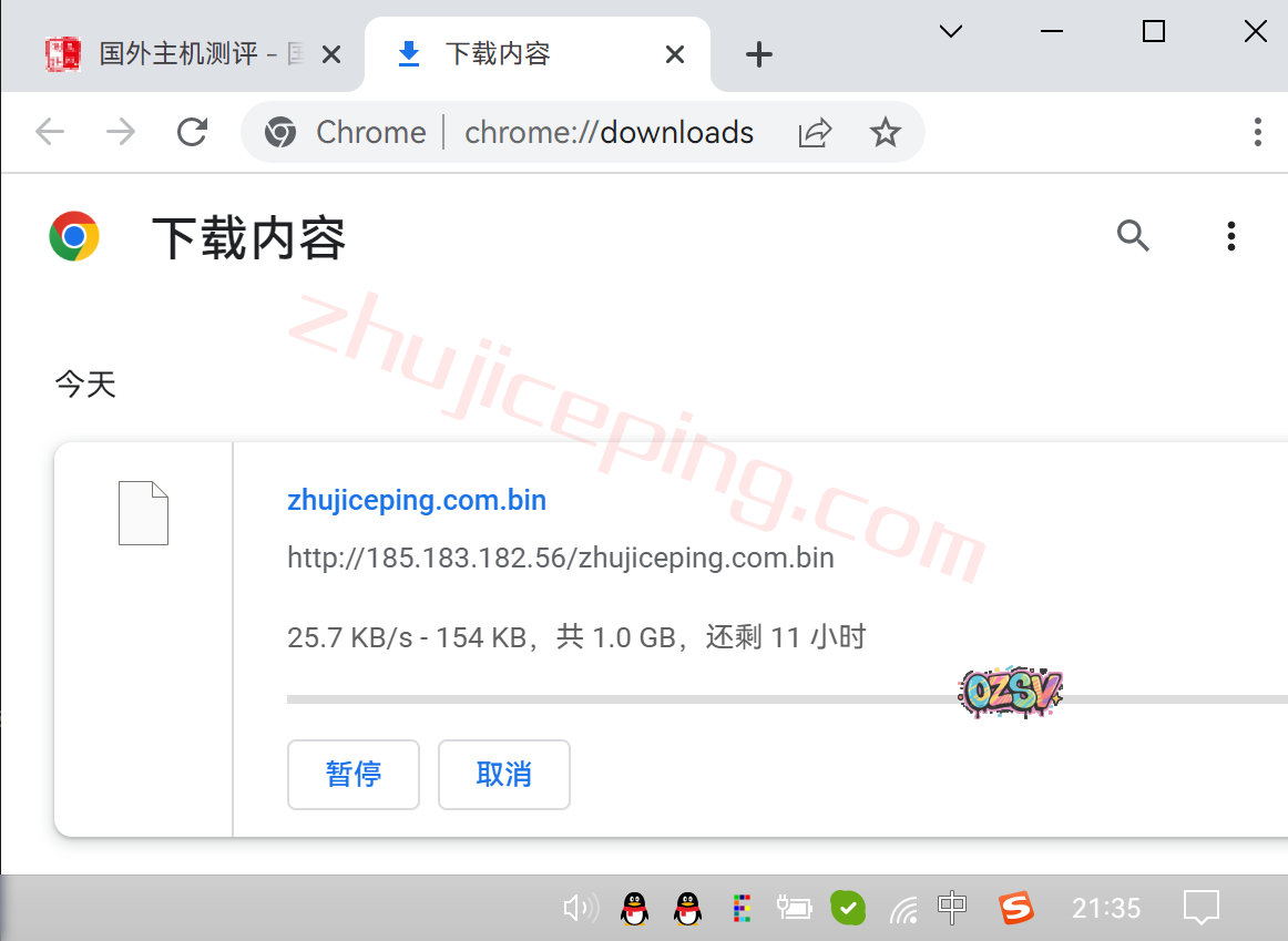 存放在测试小鸡上的文件,广州电信家庭带宽,直接浏览器下载,大致速度如下: