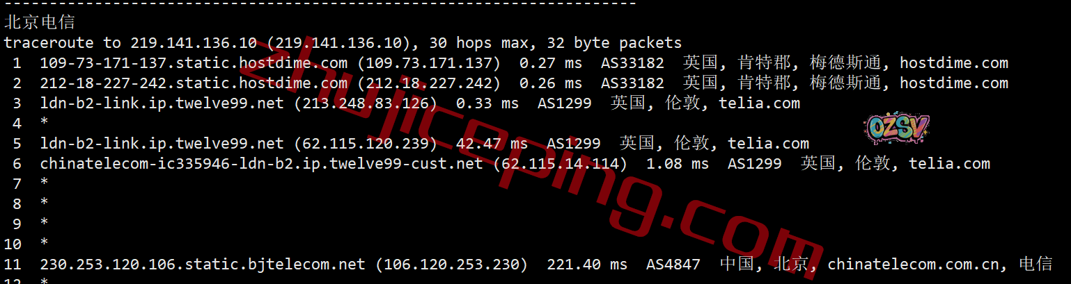 电信去程:骨干网对接telia,先去美国东海岸然后再去英国