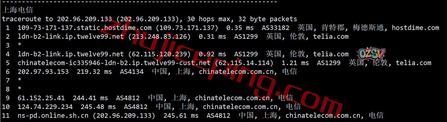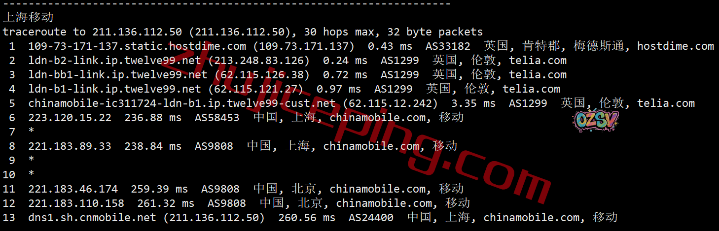 上海方向:走telia,从移动与telia在伦敦的pop直连回国