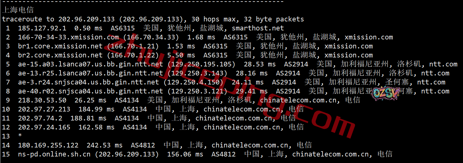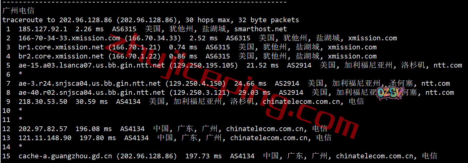 电信去程:直连电信圣何塞节点然后走NTT去盐湖城机房