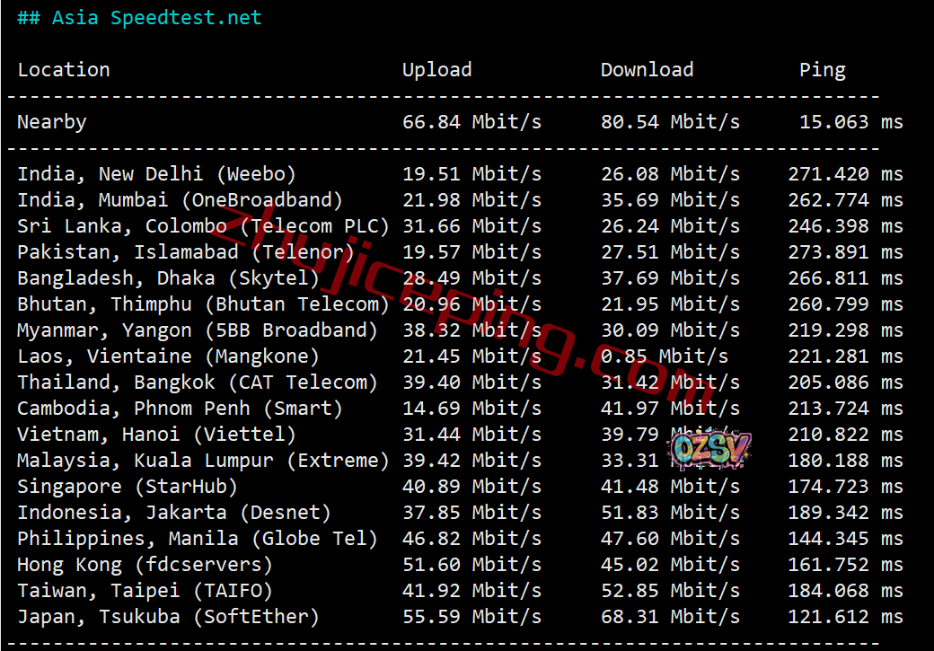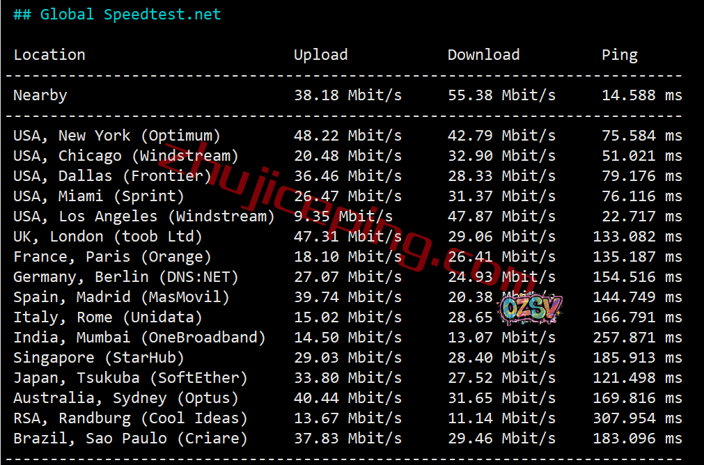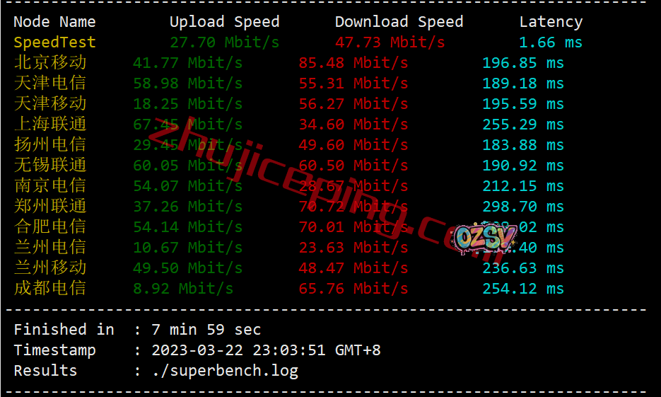 用国内的speedtest的三网节点跑一圈看看上下行能达到多少?大致如下: