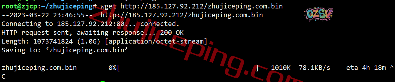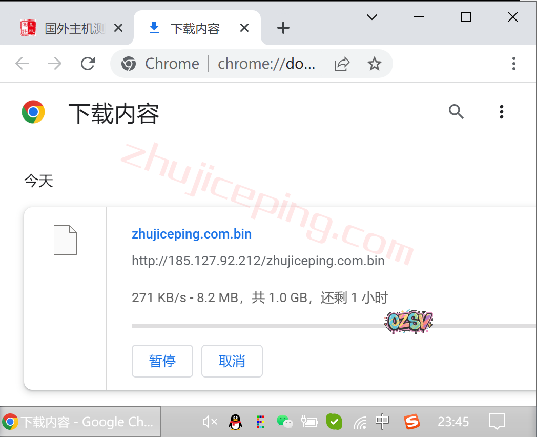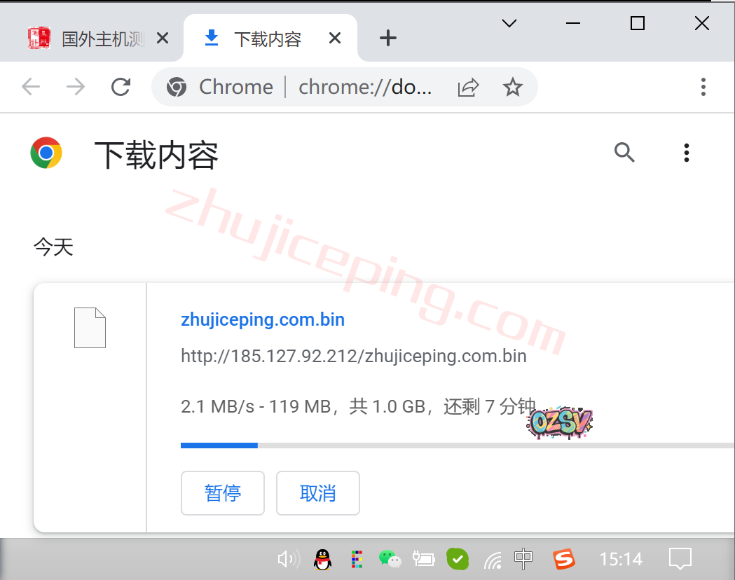 存放在测试小鸡上面的文件,广州电信家庭带宽的下载速度: