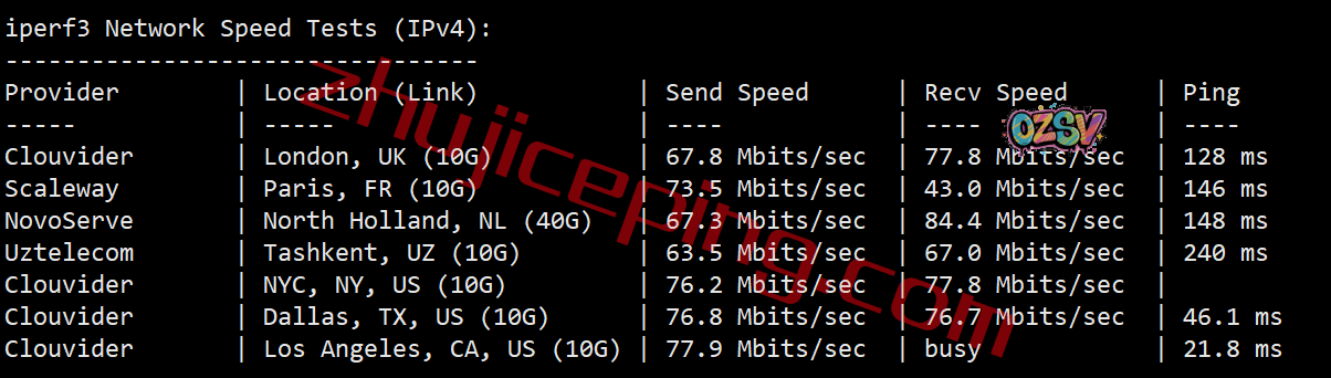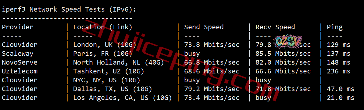 同样iperf3测试欧美节点,但是是IPv6环境下: