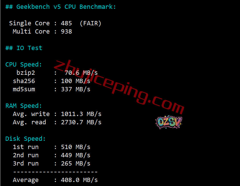 VPS性能综合来说比较弱,估测是四路大母鸡导致的;